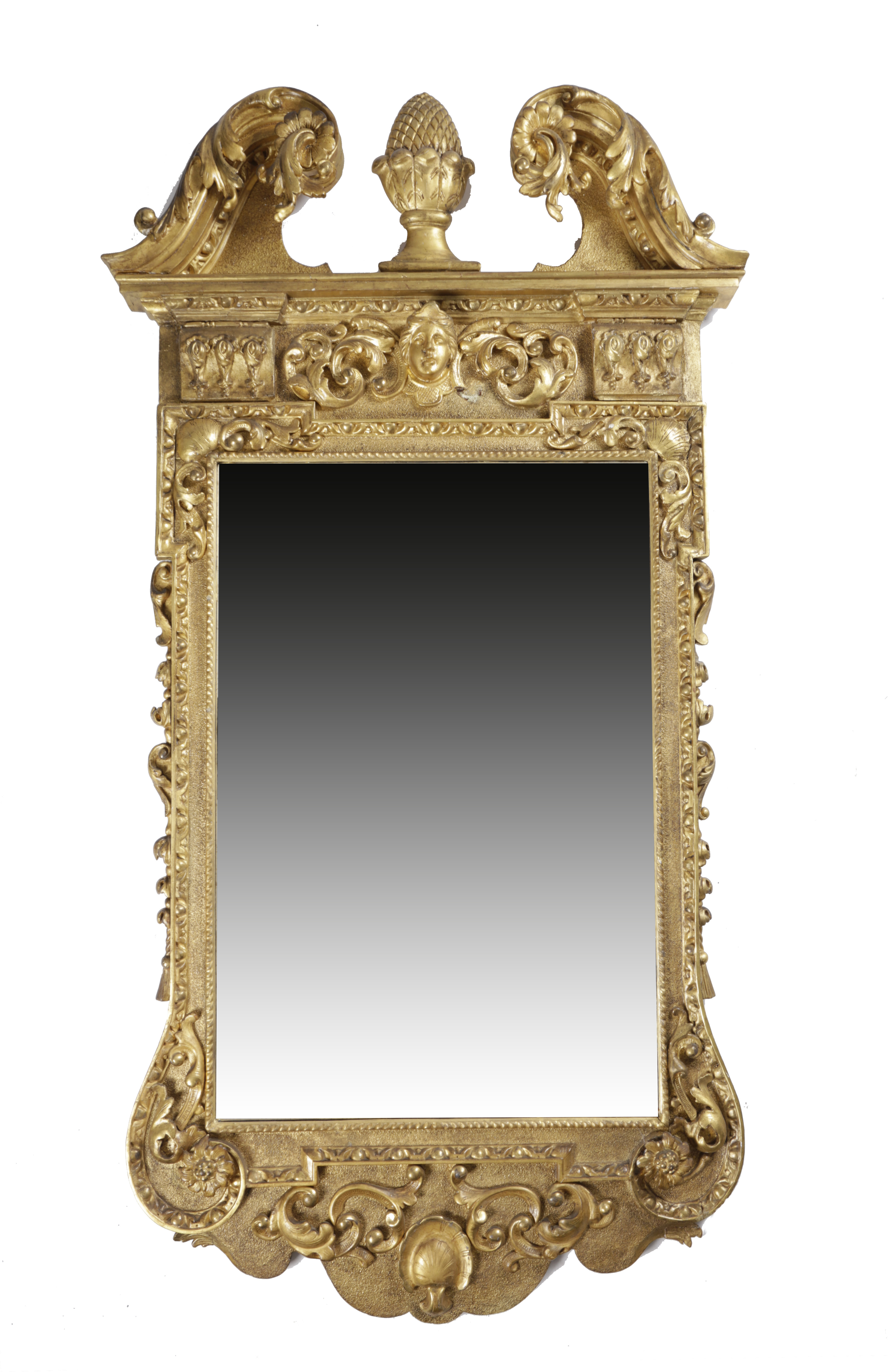 A LARGE GILTWOOD WALL MIRROR IN GEORGE II STYLE
