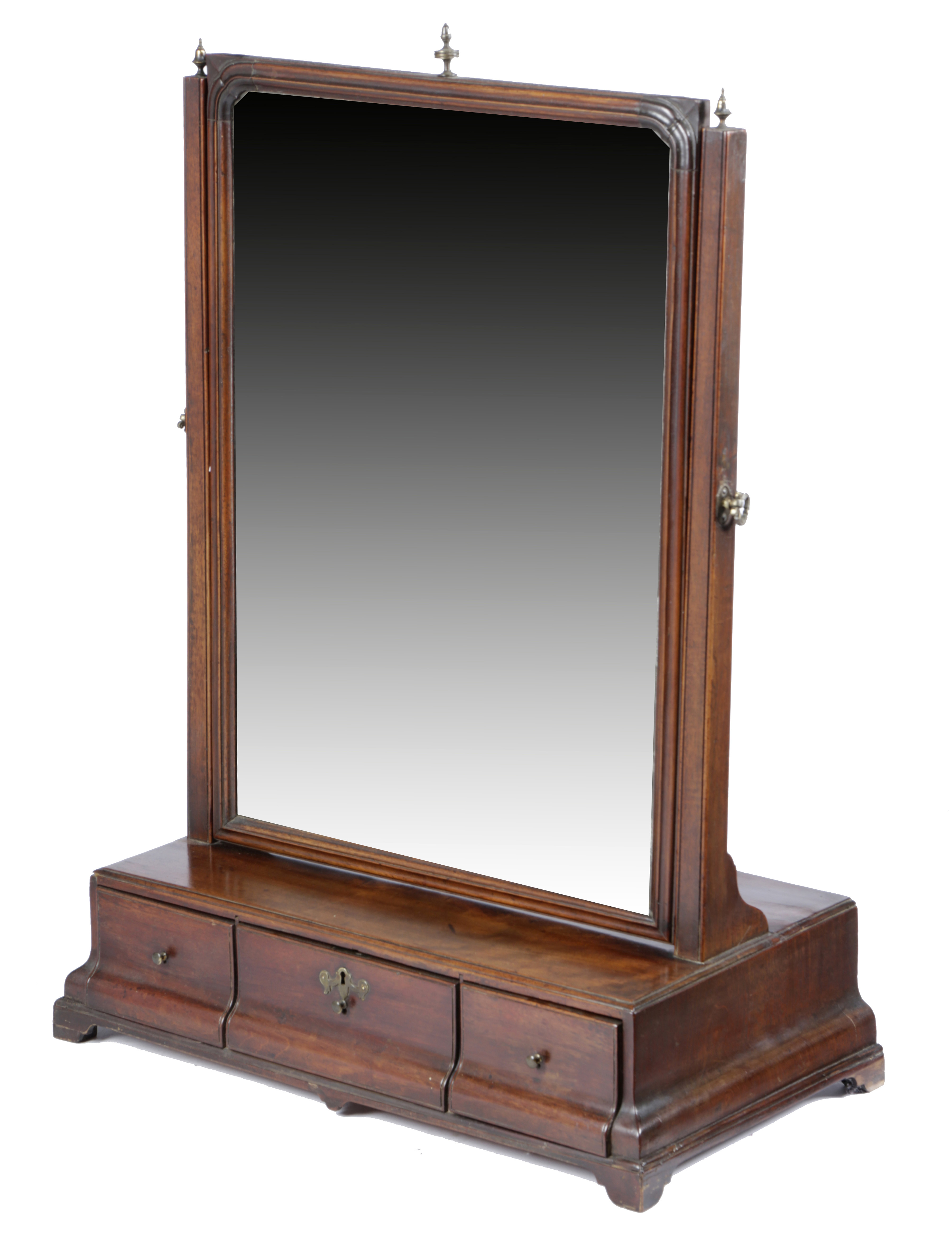 A LARGE GEORGE II MAHOGANY DRESSING TABLE MIRROR