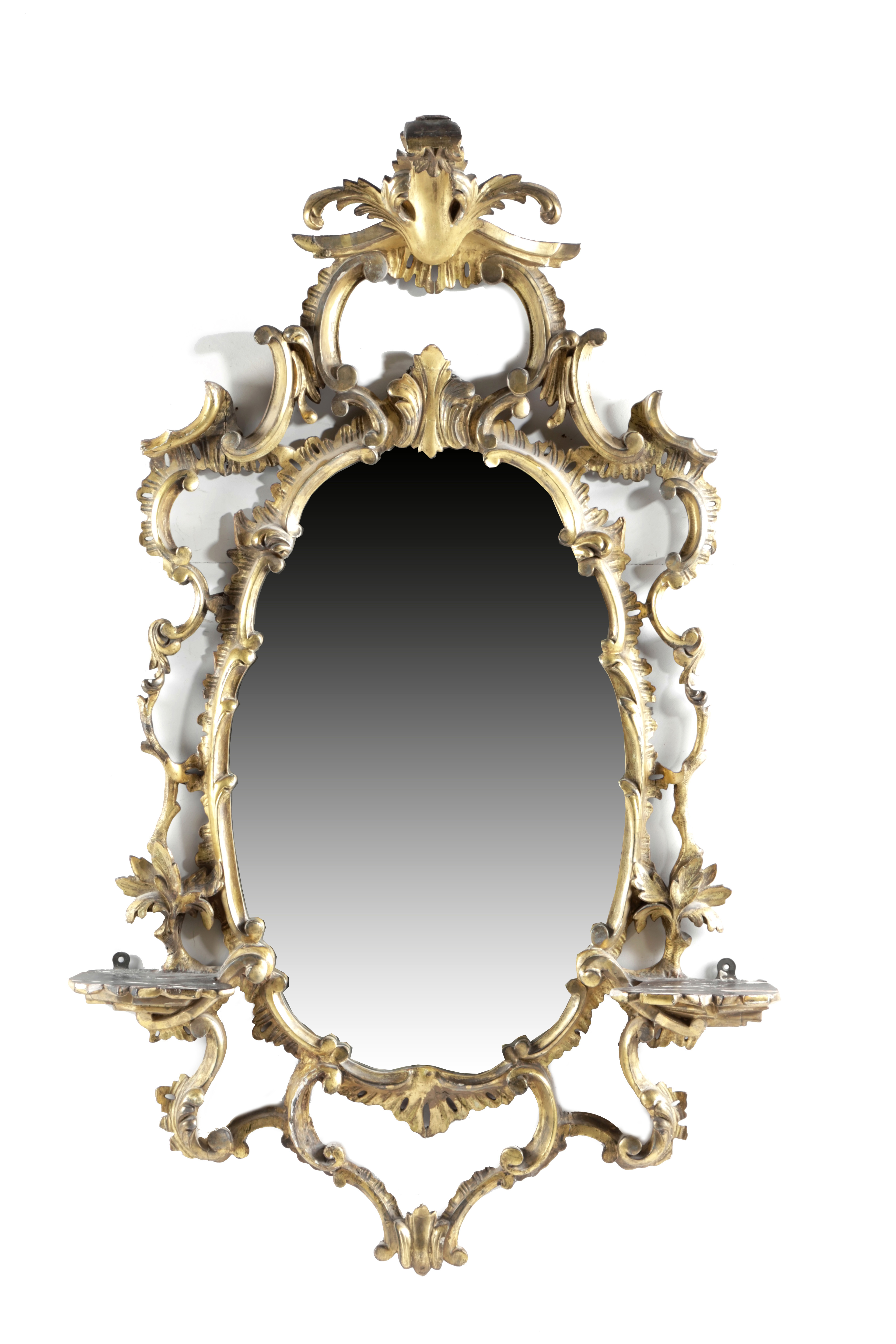 A GILTWOOD WALL MIRROR IN GEORGE II STYLE