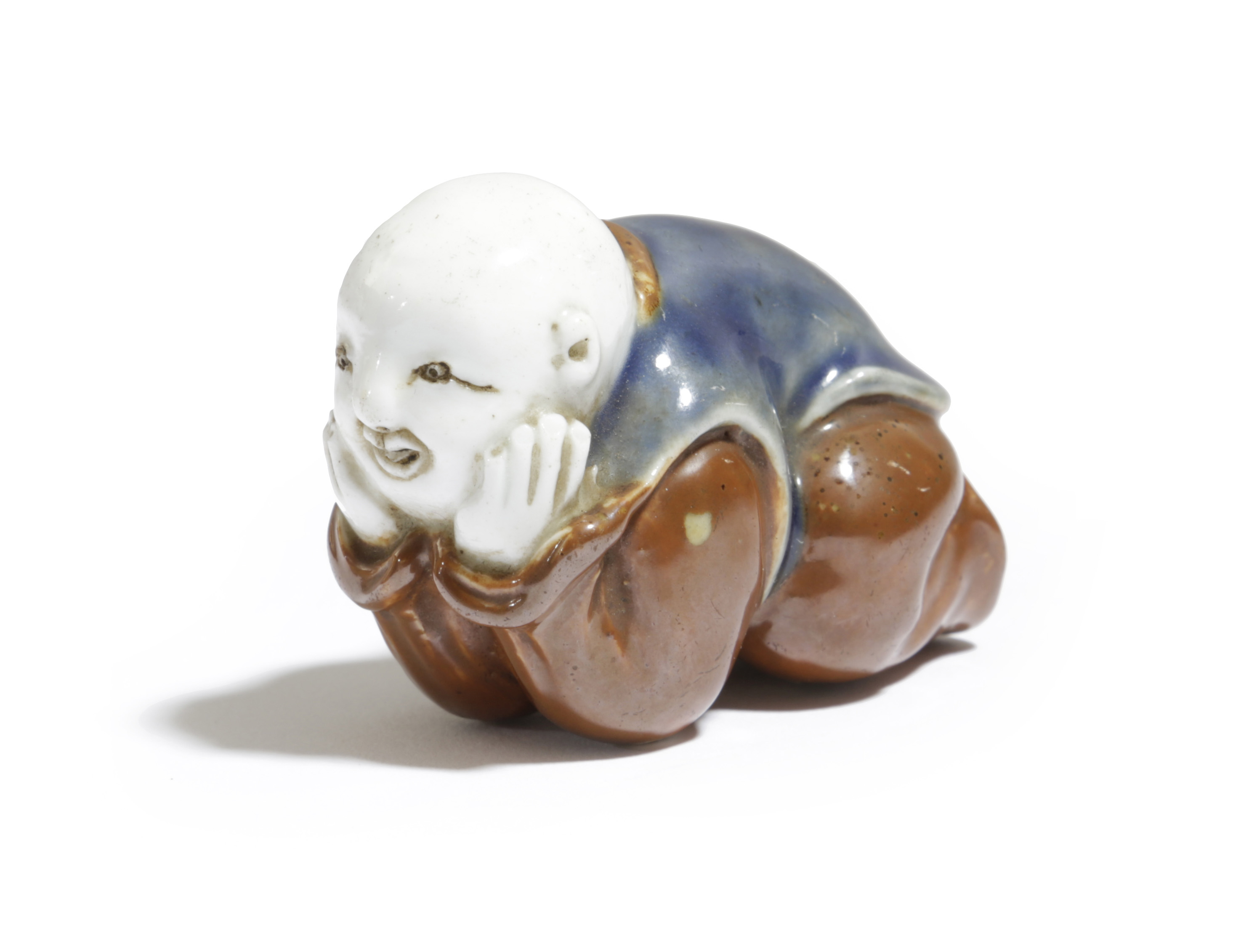 A JAPANESE HIRADO PORCELAIN NETSUKE OF A KARAKO