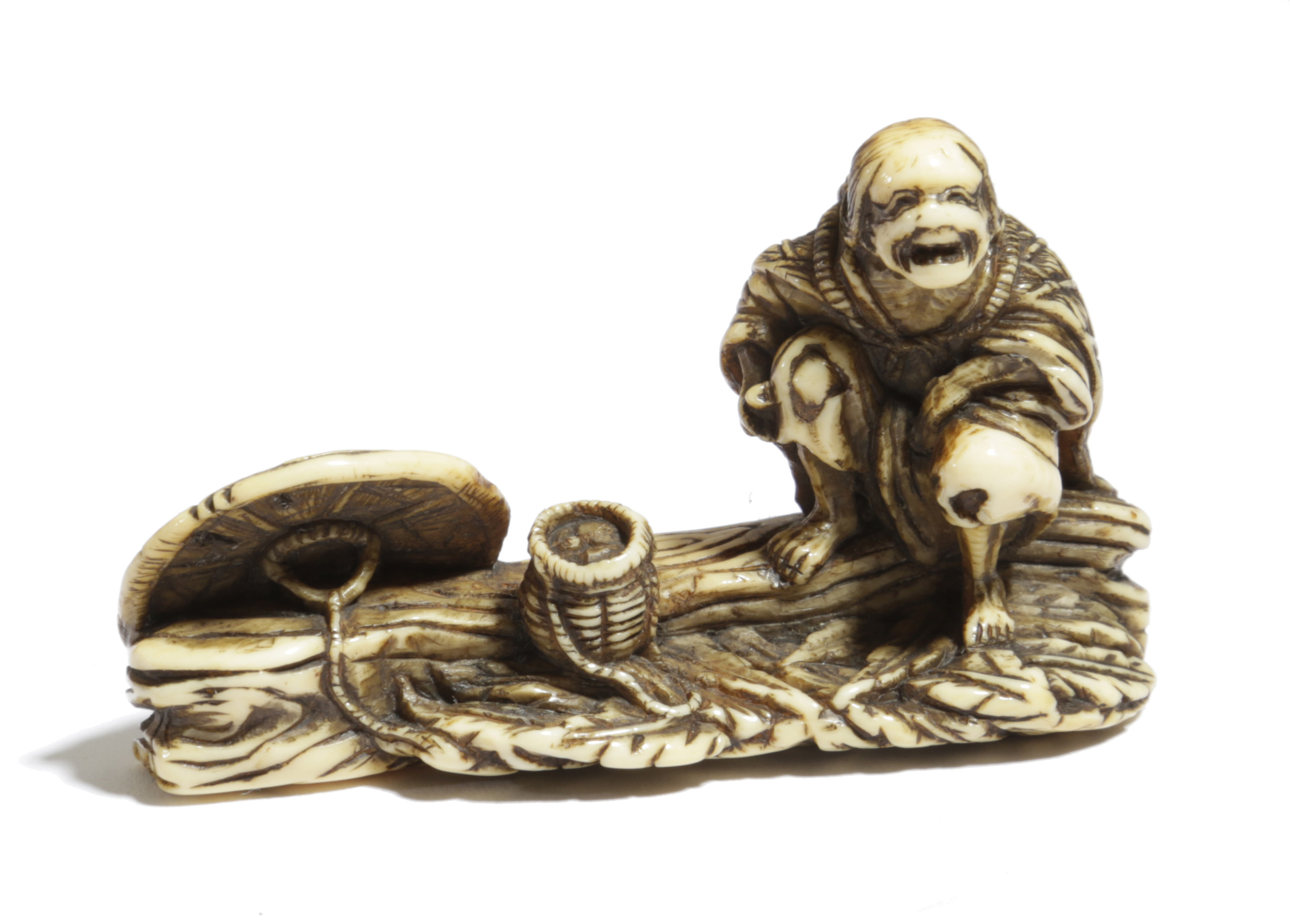 λ A JAPANESE IVORY NETSUKE OF ONO NO KOMACHI