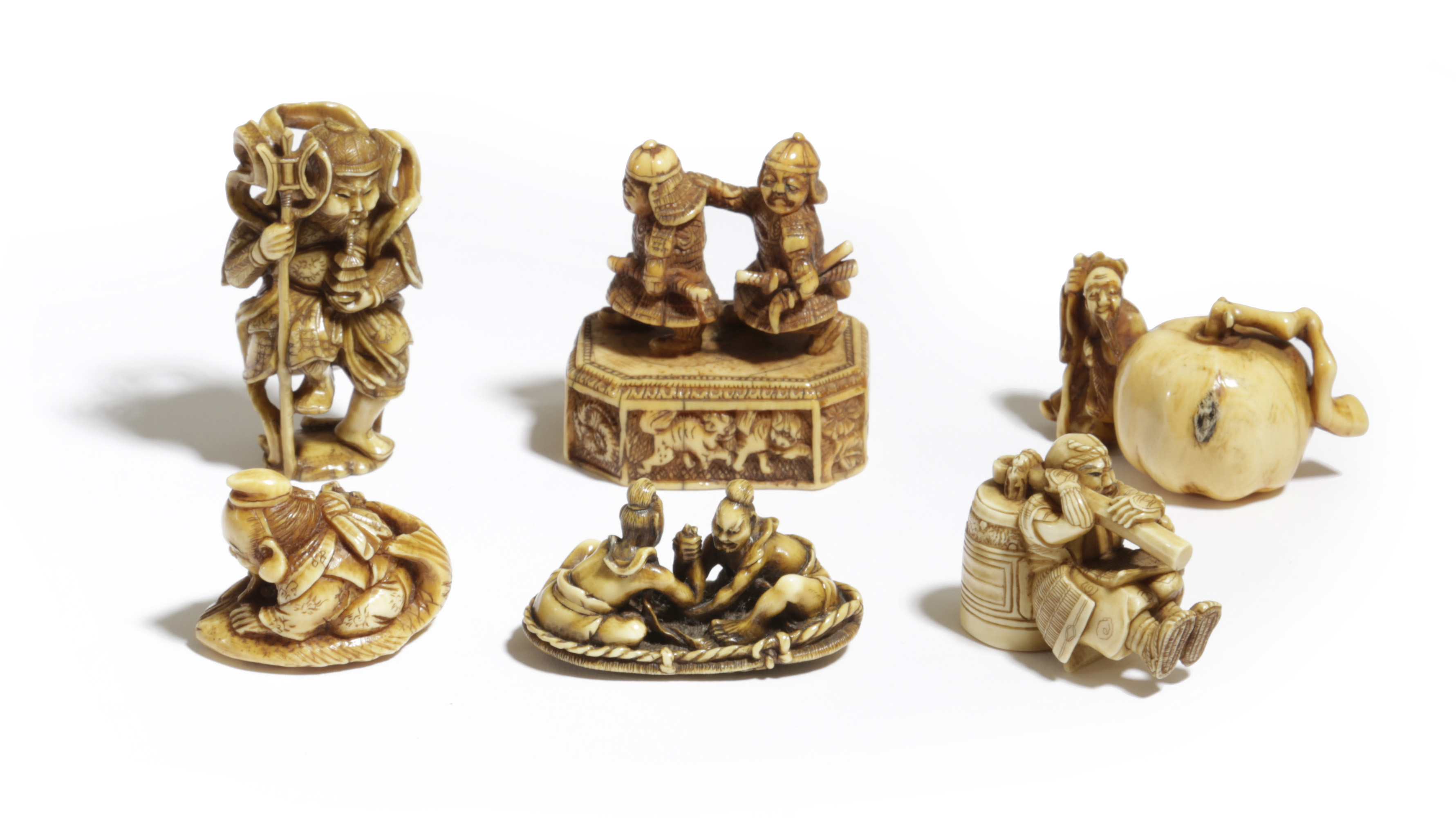 λ A COLLECTION OF SIX JAPANESE IVORY NETSUKE