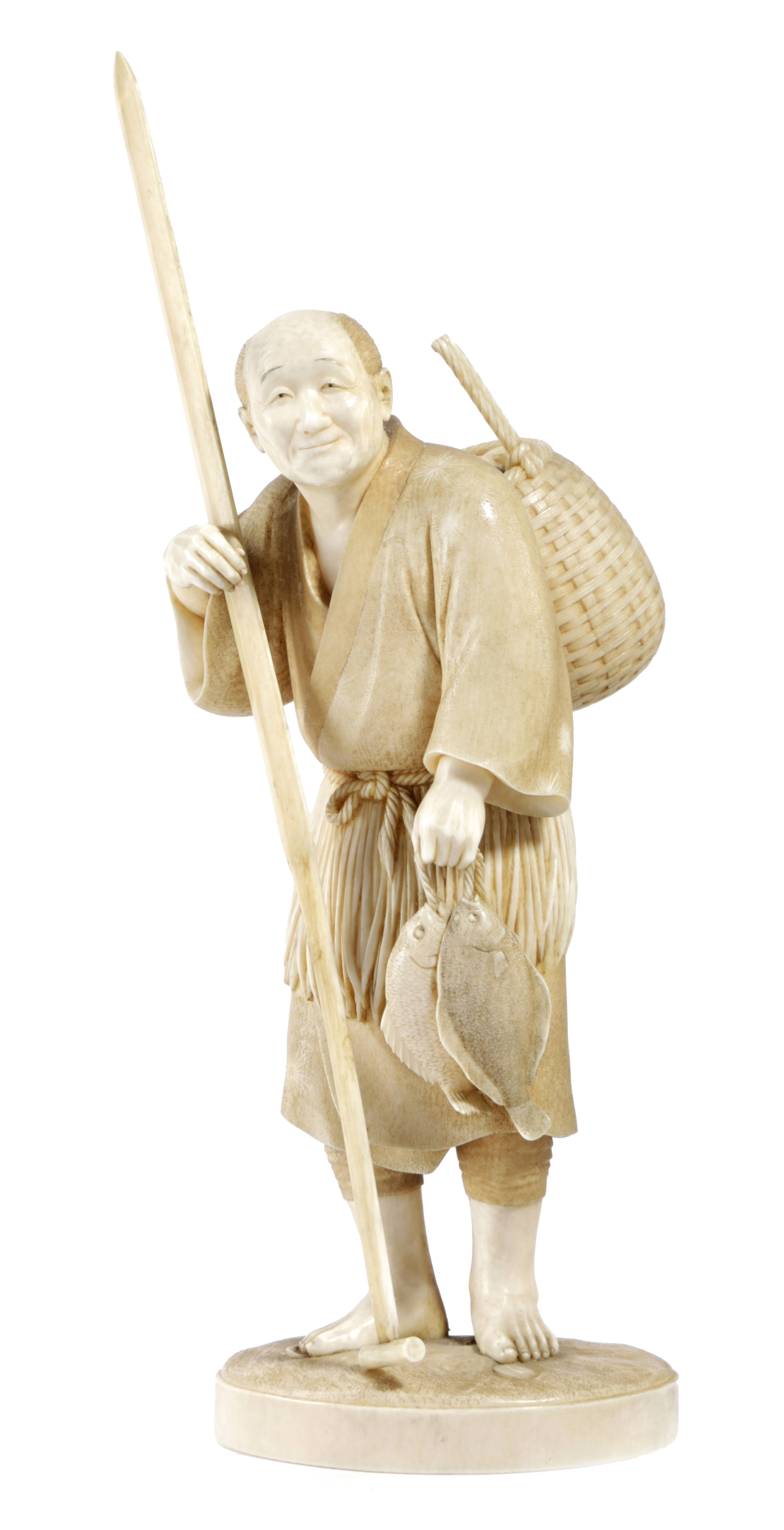 λ A JAPANESE IVORY OKIMONO FIGURE OF A FISHERMAN