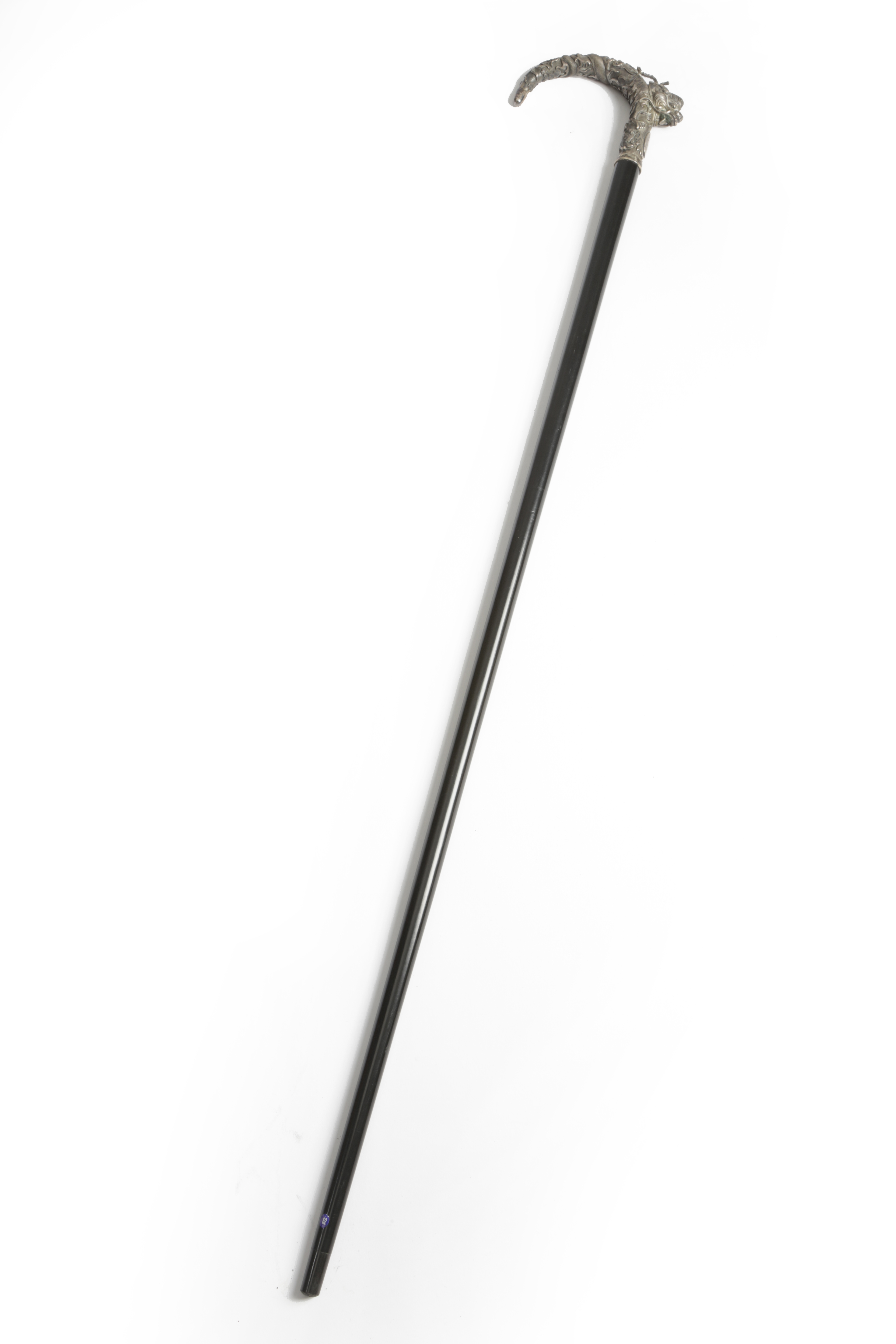 the silver handle in the form of a scaly dragon, with a vacant plaque, with an ebonised shaft and horn ferrule
