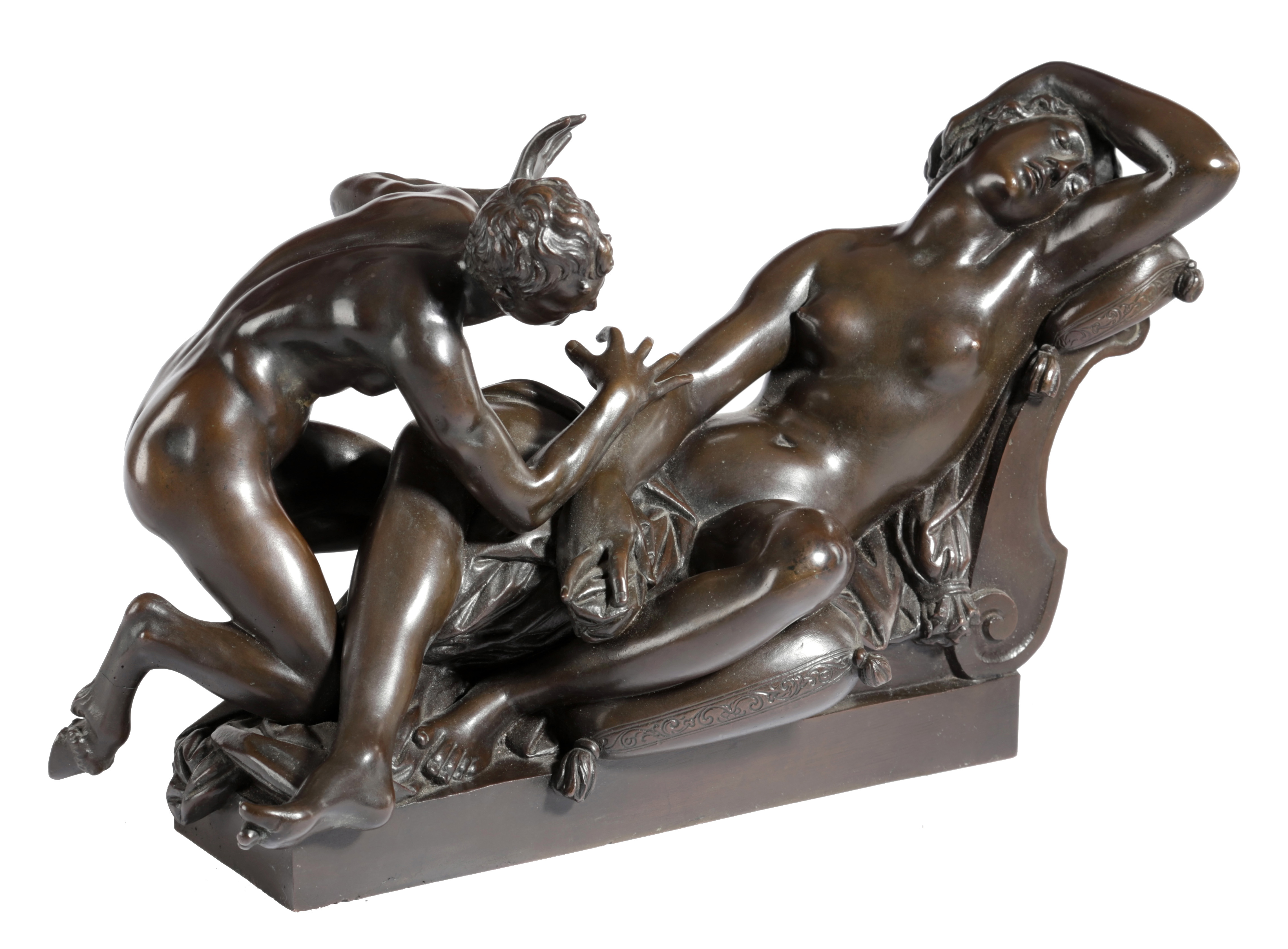 A BRONZE GRAND TOUR GROUP OF A SLEEPING NYMPH AND SATYR