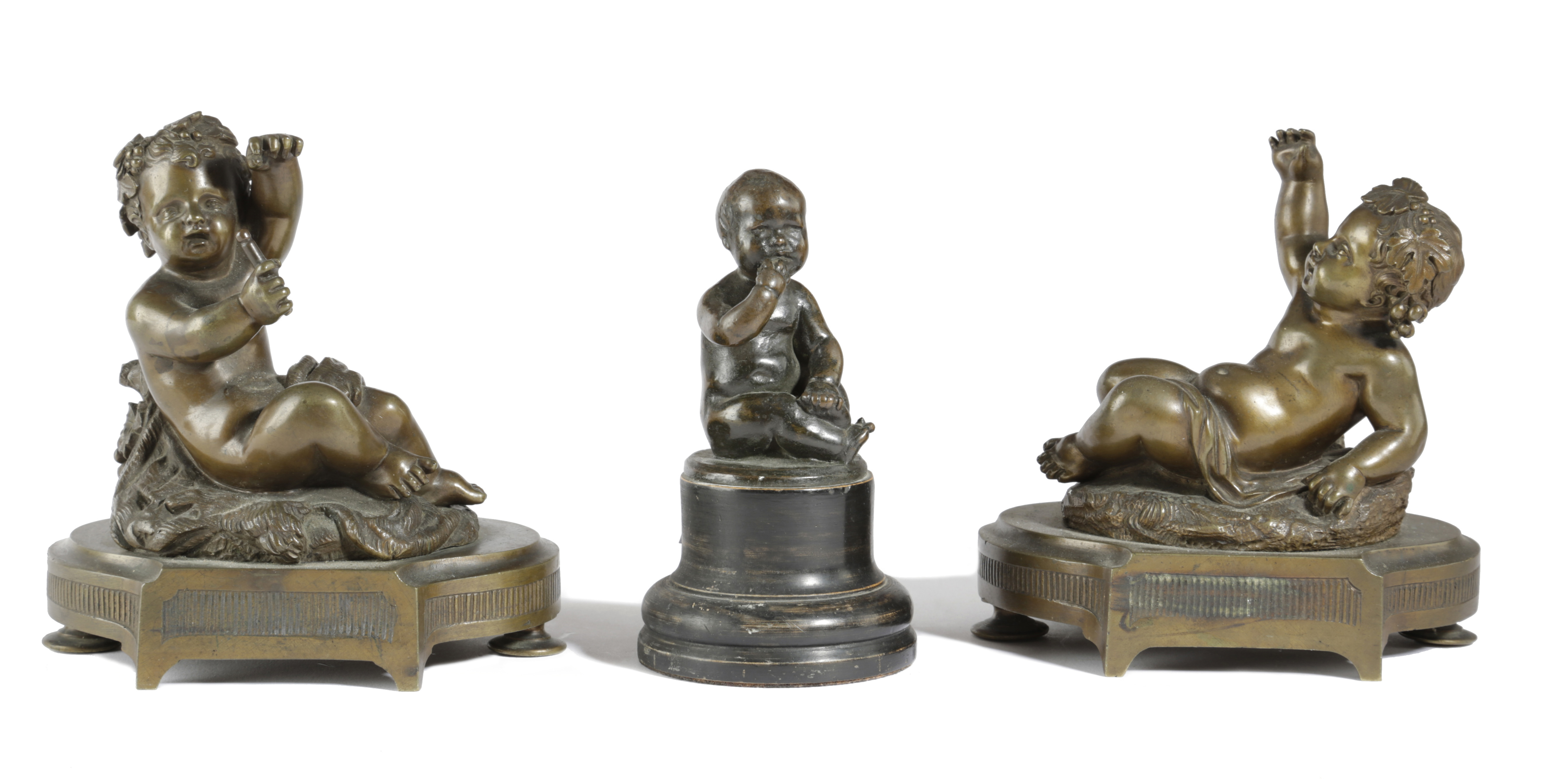 A PAIR OF FRENCH BRONZE MODELS OF BACCHANALIAN CHERUBS