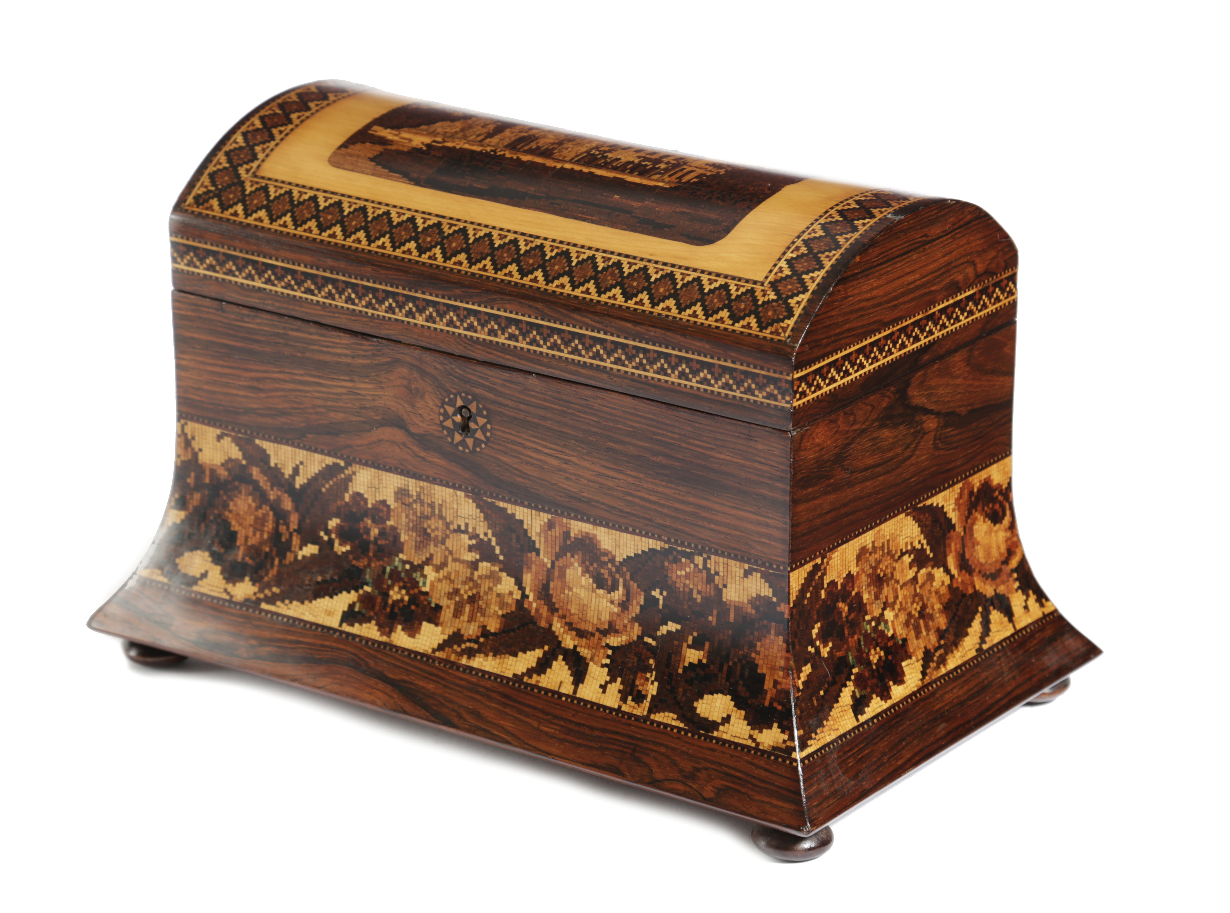 ‡ A VICTORIAN TUNBRIDGE WARE AND ROSEWOOD TEA CADDY
