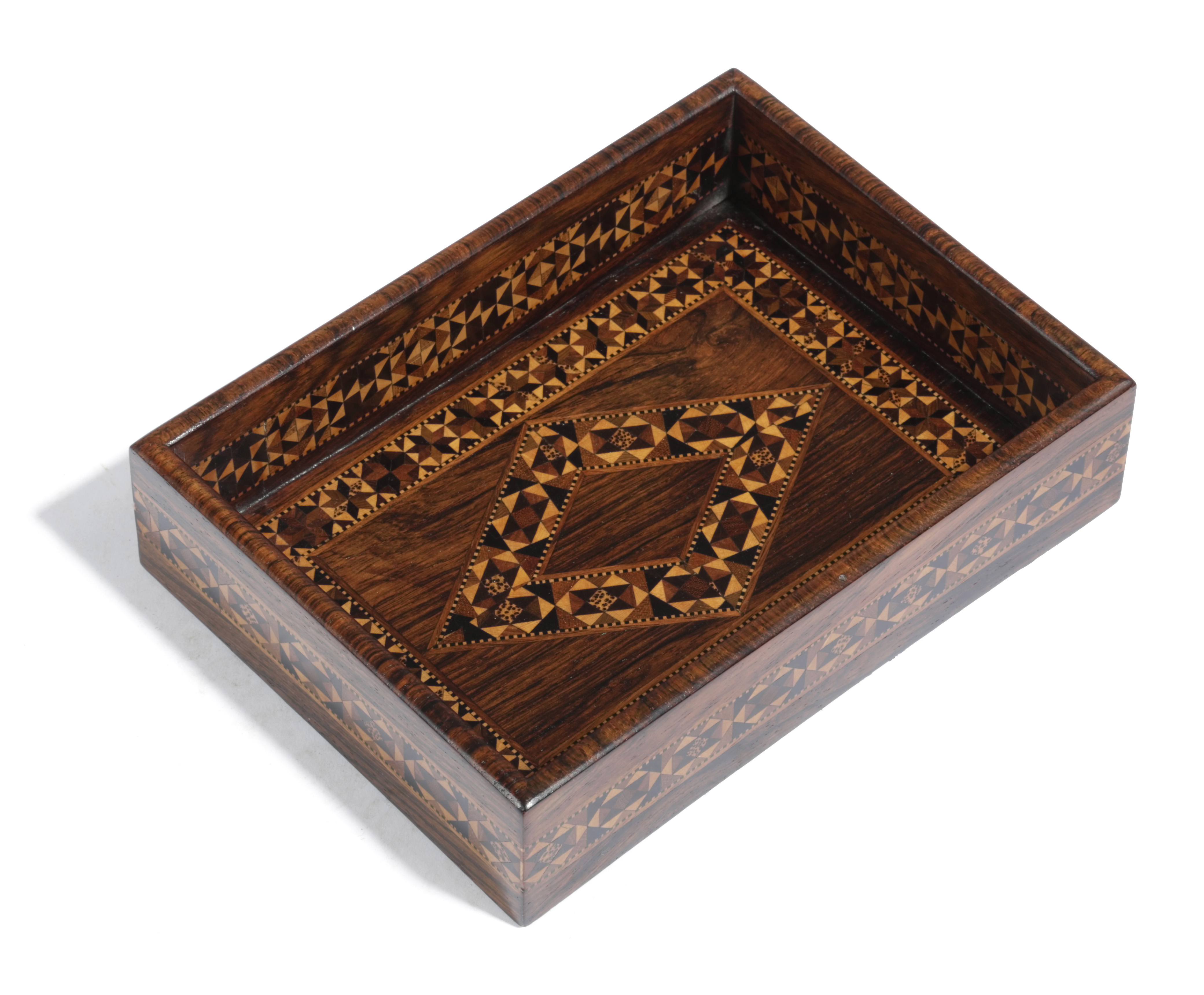 ‡ A VICTORIAN TUNBRIDGE WARE AND ROSEWOOD TRAY