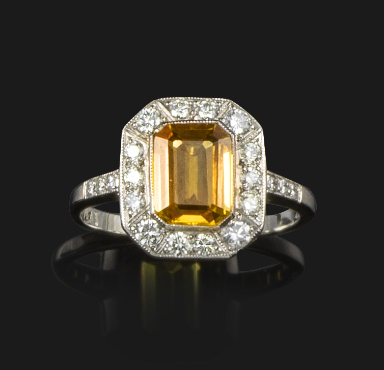 A yellow sapphire and diamond cluster ring