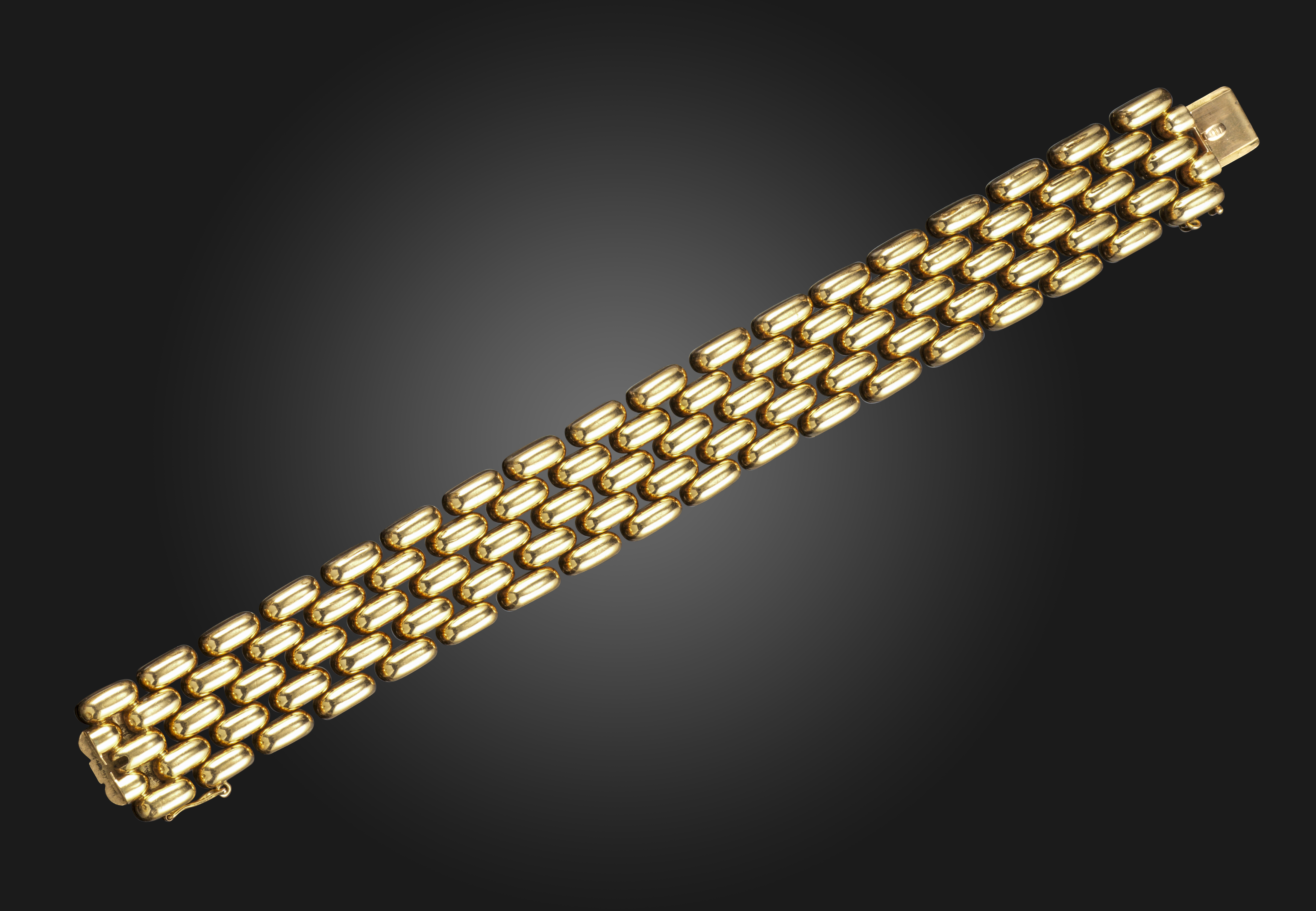 A fancy-link gold bracelet, of brick pattern design set in yellow gold, 19cm long, 49g
