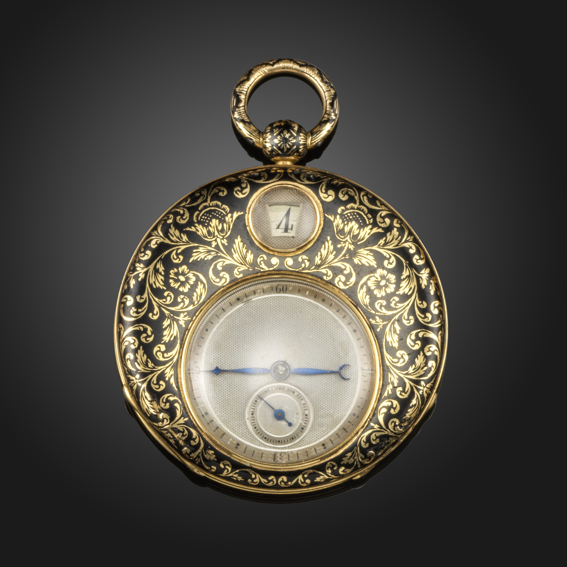 A yellow gold and enamel Jump Hour open-faced pocket watch