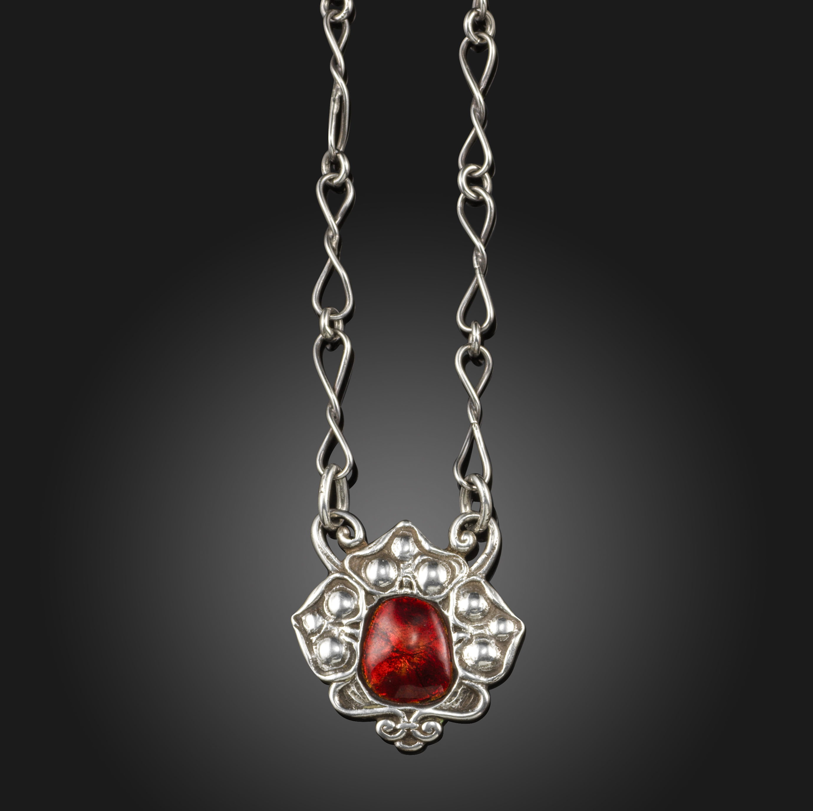 A silver and red enamel pendant by Ramsden & Carr