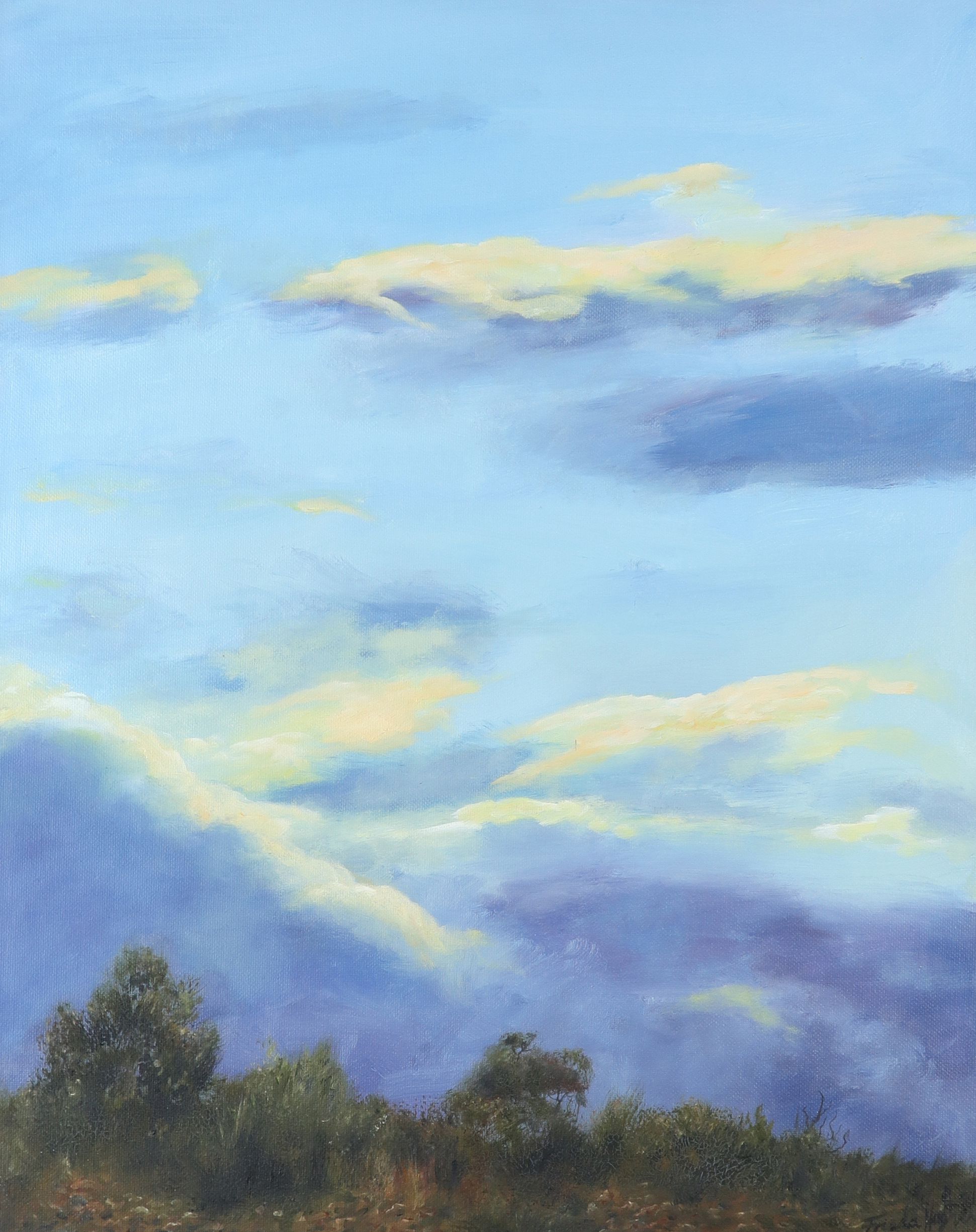 Signed Frieda Hughes (lower right), and signed and inscribed SUNSET NO 3./Frieda Hughes (to backing board)