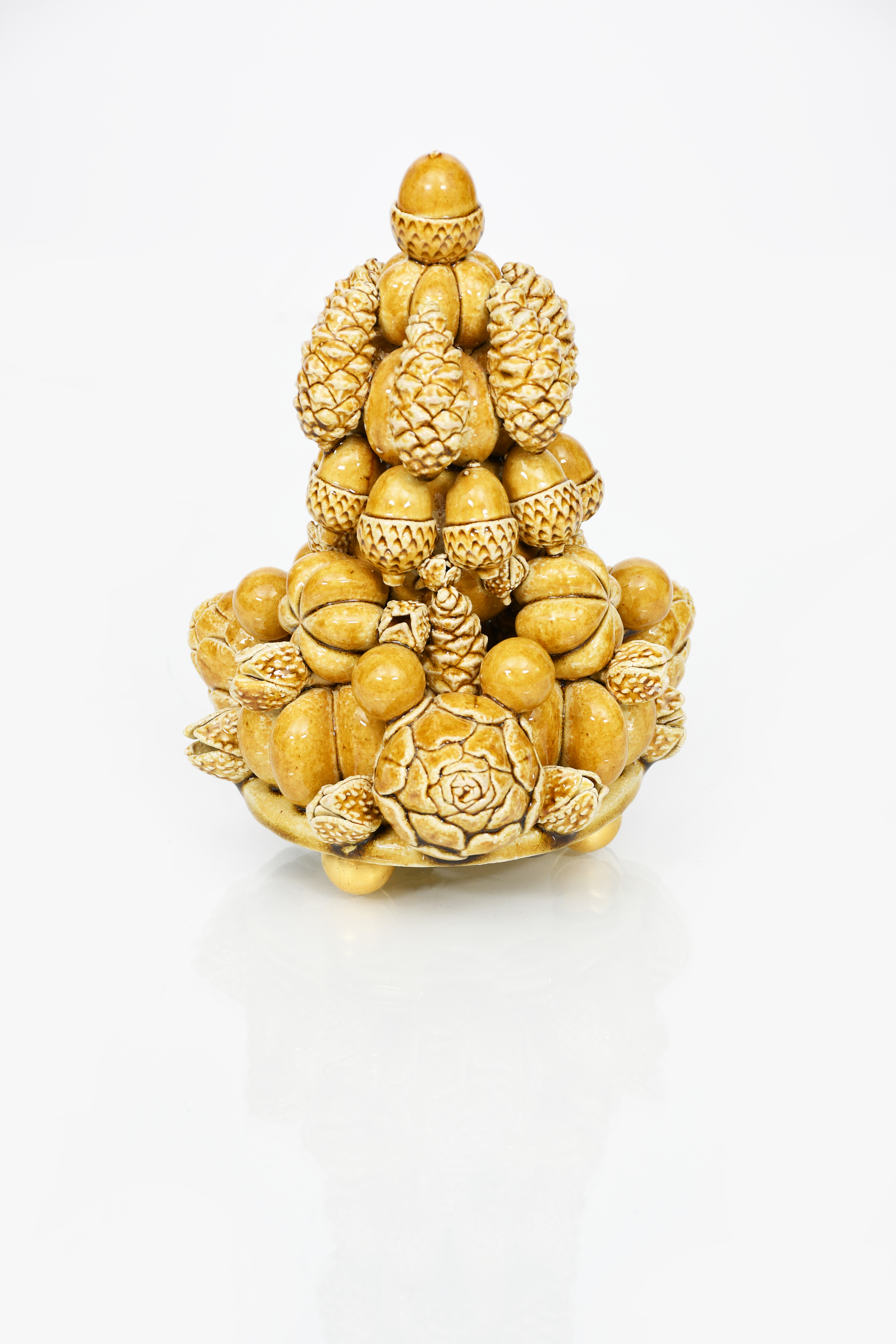 crystalline-glazed stoneware, on three gilded ball feet