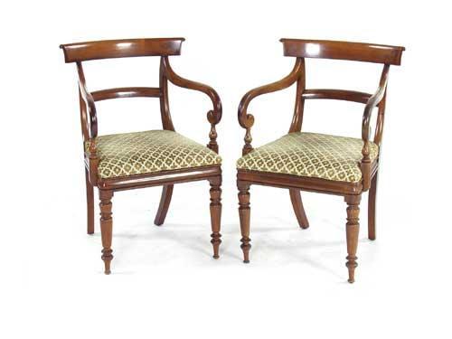 A pair of George IV rosewood open armchairs, with later covered drop in seats. (2)