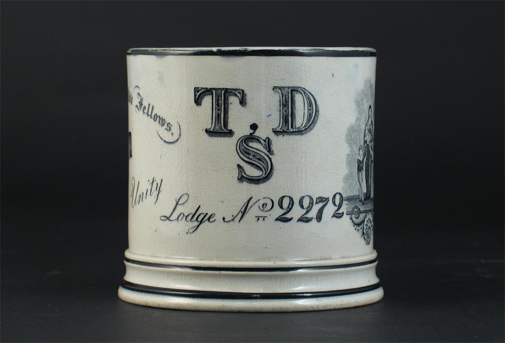 Masonic Interest: a pearlware cylindrical mug, printed in black and inscribed 'Independent Order of Odd Fellows, Manchester Unity, T D S Lodge No.2272' , 19th century, 10.5cm.