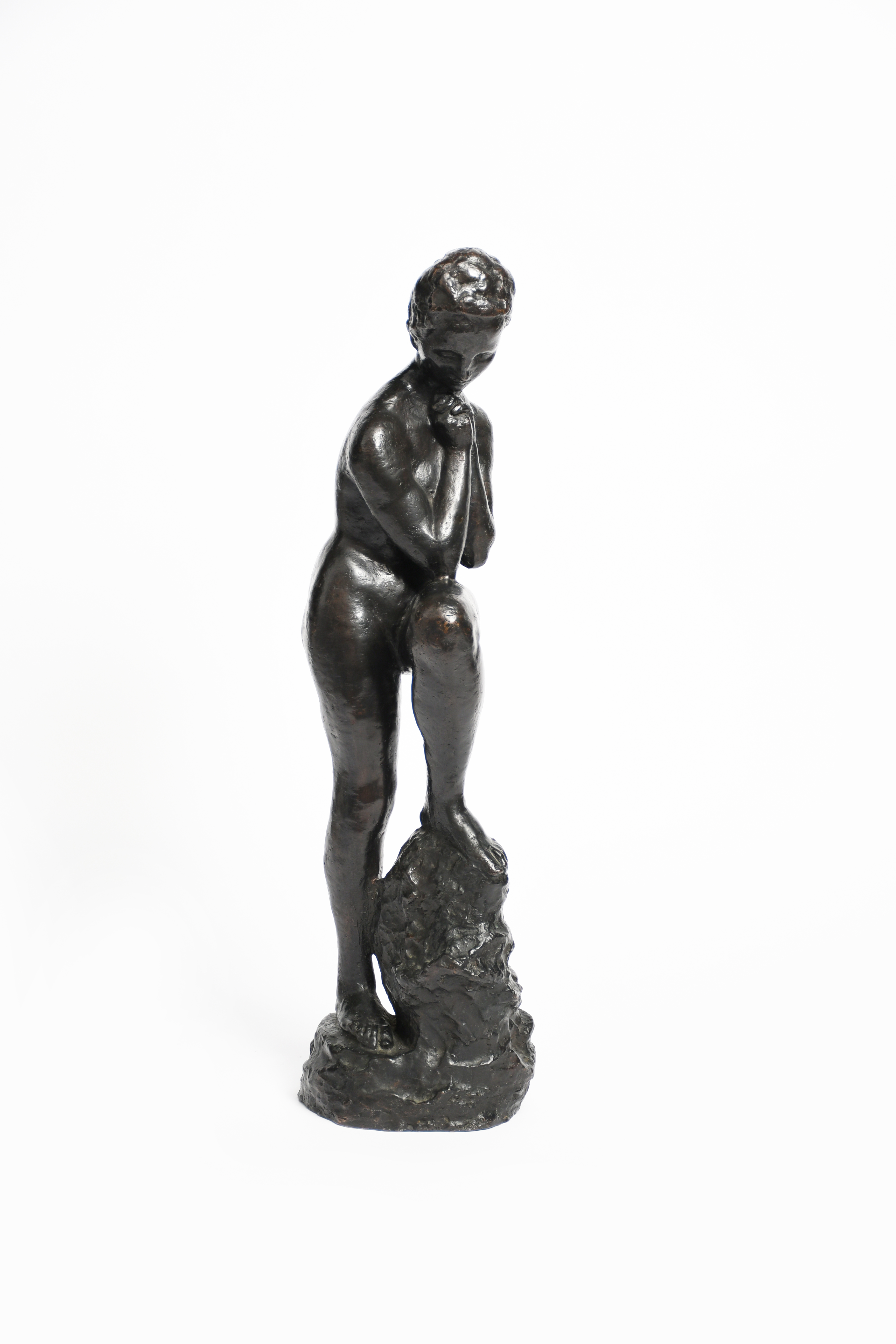 a tall patinated bronze sculpture of a naked female standing, cast by Gonot Foundry posthumously,