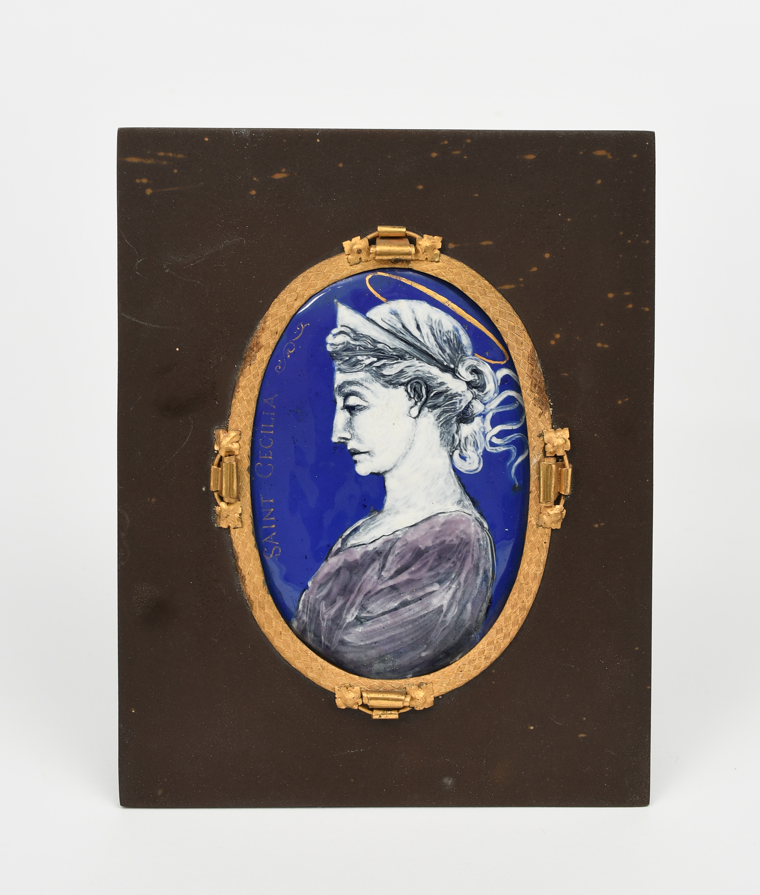 A George Hunt enamel panel of St Cecilia