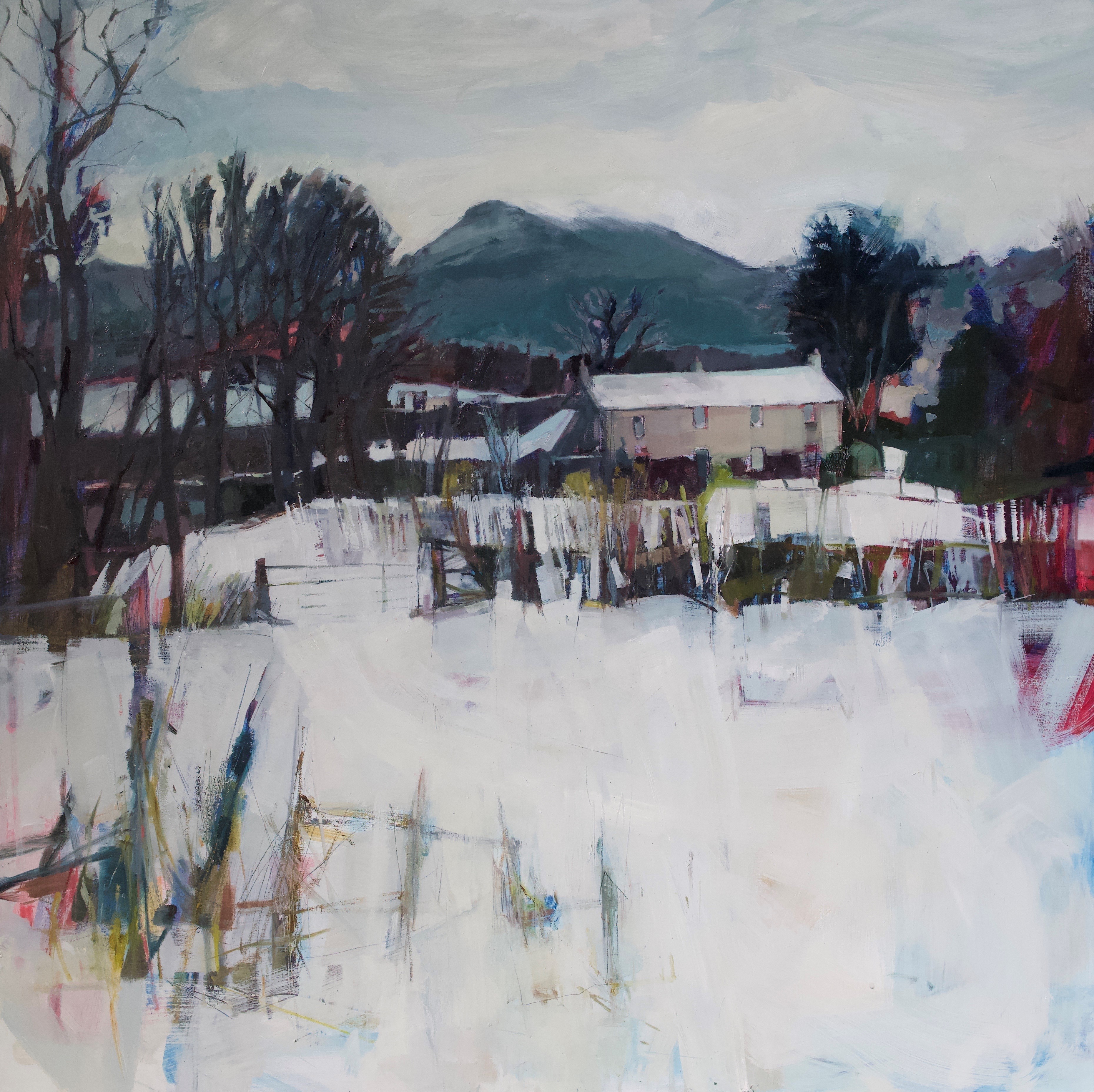 Tessa's landscape painting is inspired by a love of colour and an interest in the dialogue between spatial depth and the interplay of shapes and marks across the picture surface. She loves the tapestry of forms and textures within the landscape, both natural and man-made and particularly enjoys the blanket effect of snow to flatten and simplify form. She makes on-the-spot pastel and pencil sketches and then develops them in her Edinburgh studio.