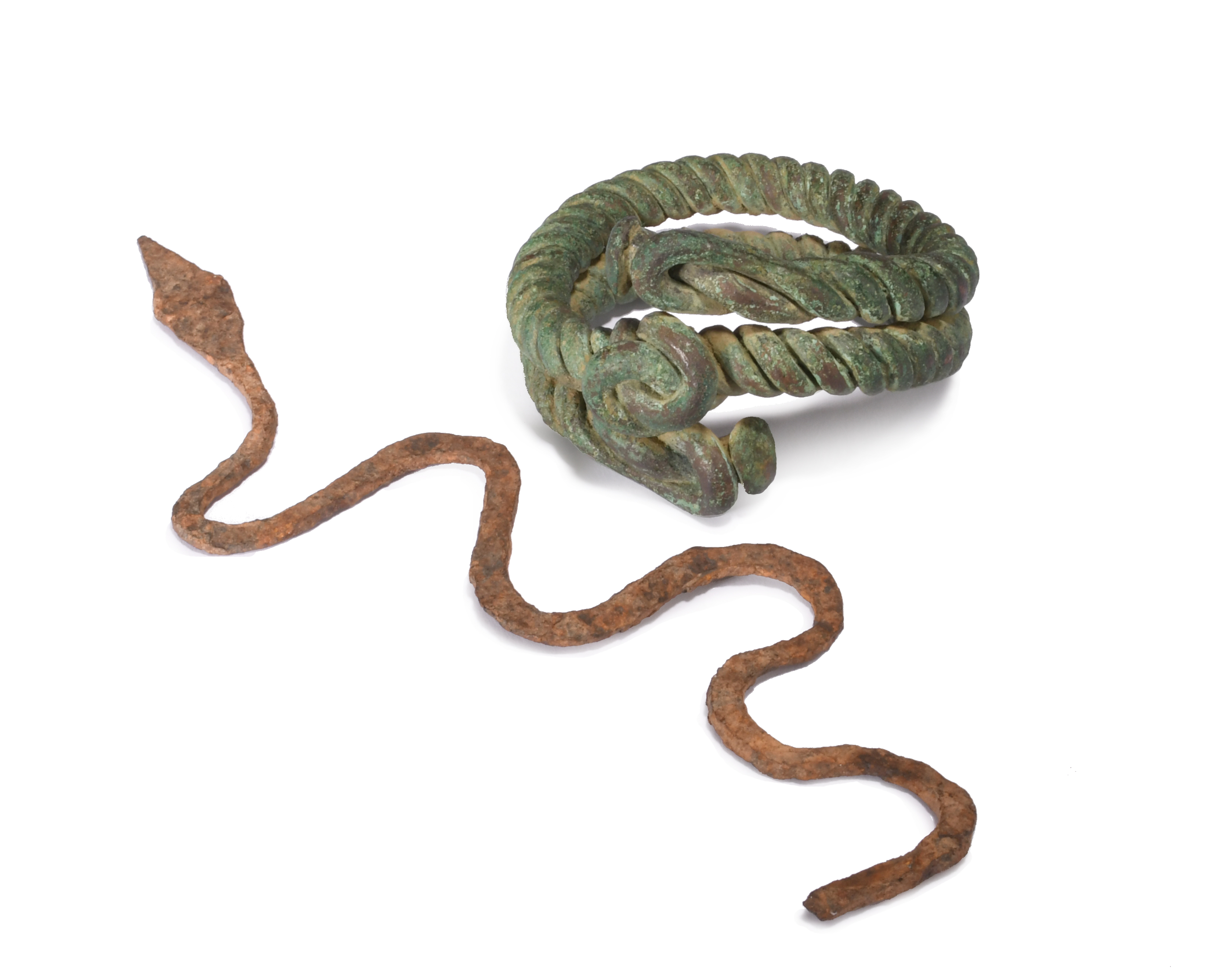 and a Cross River brass bracelet, 9.6cm wide. (2)