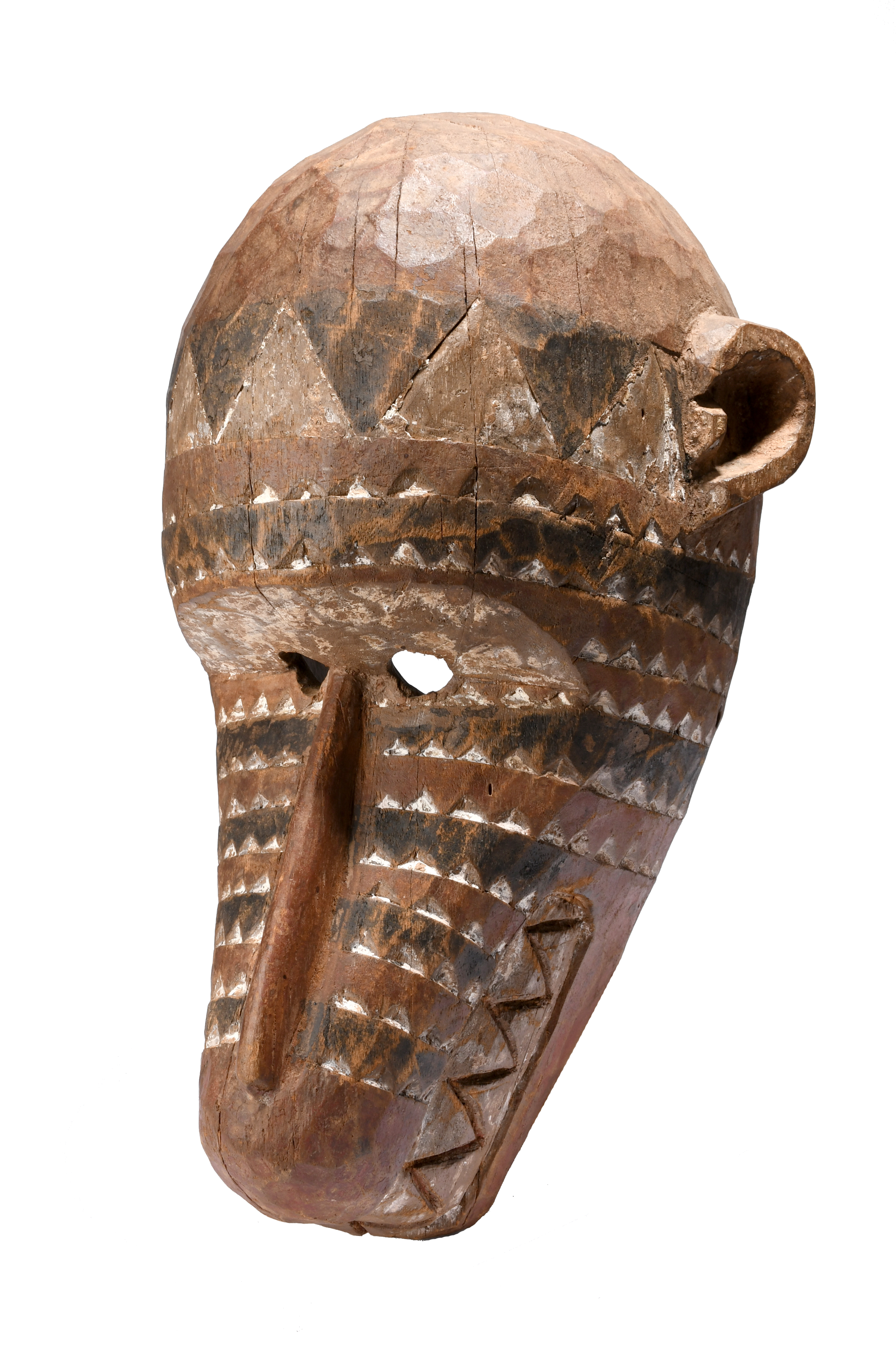 with carved and pigment decoration, with a handwritten label Masque Singe Bobo Fing Village Kouroumani,