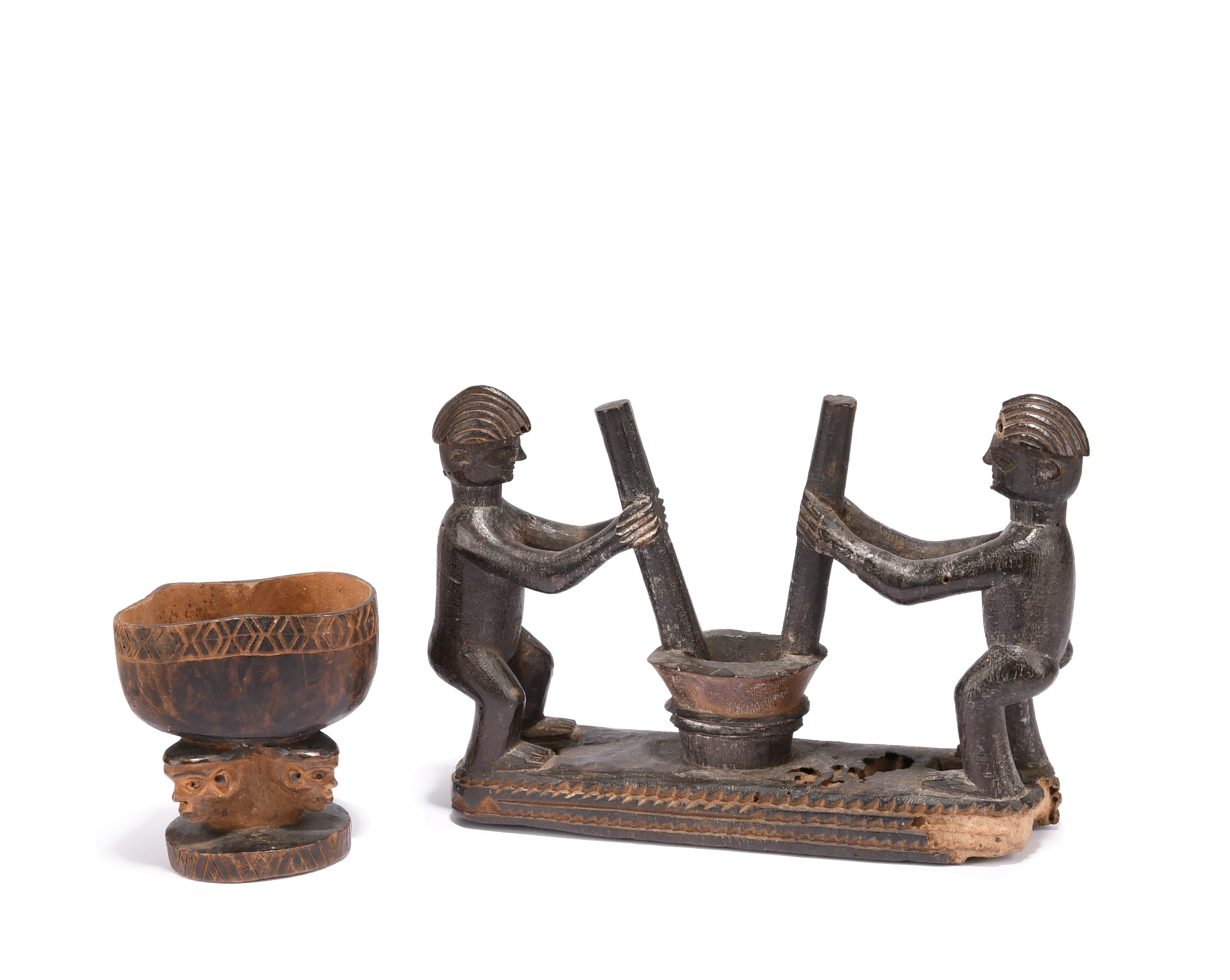 and a Pende group of two figures pounding pestles in a mortar, 13cm high. (2)