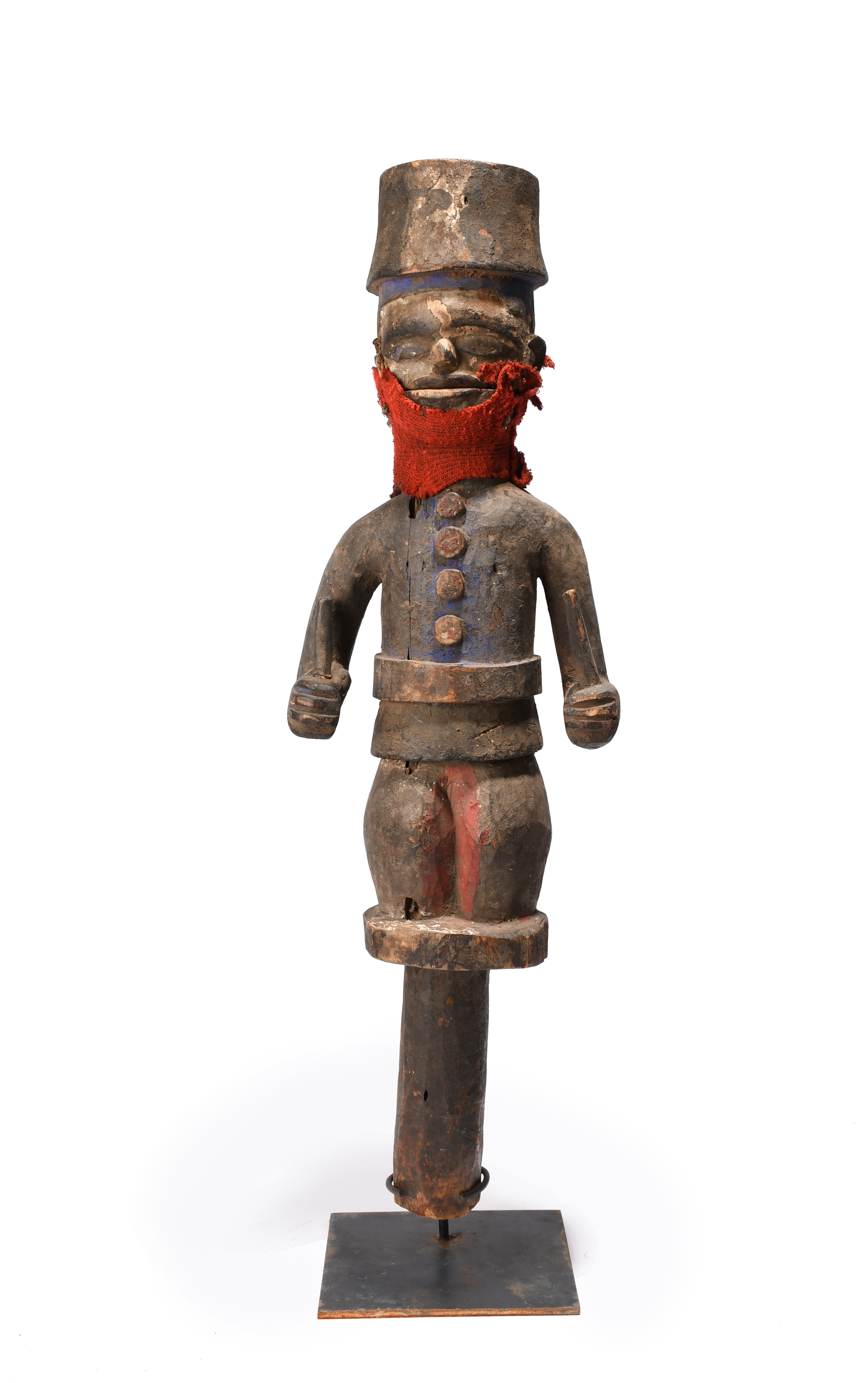 with an articulated jaw, now with a cloth repair, with remains of pigment decoration,