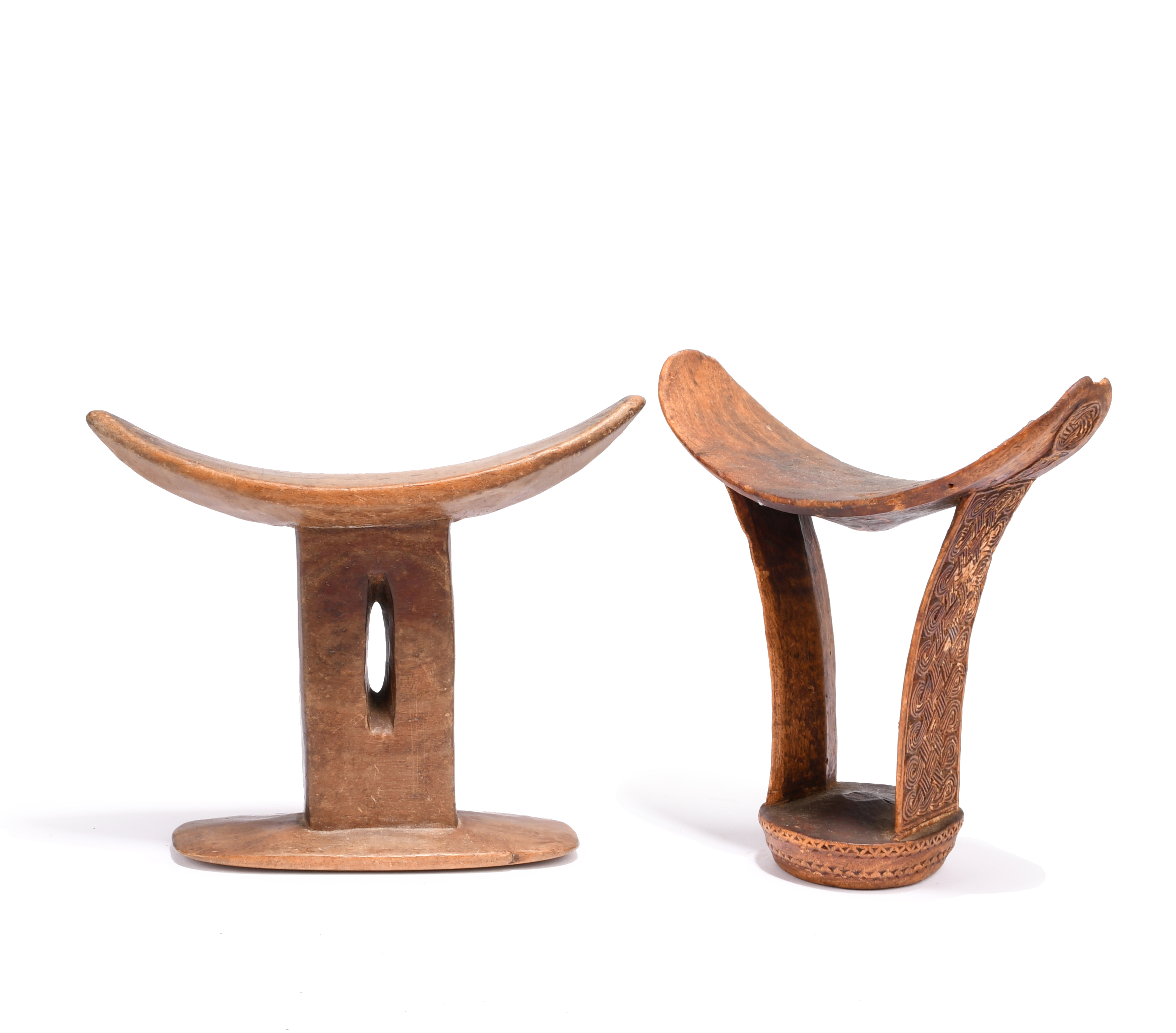 one with carved weave decoration and the other with a pierced support,