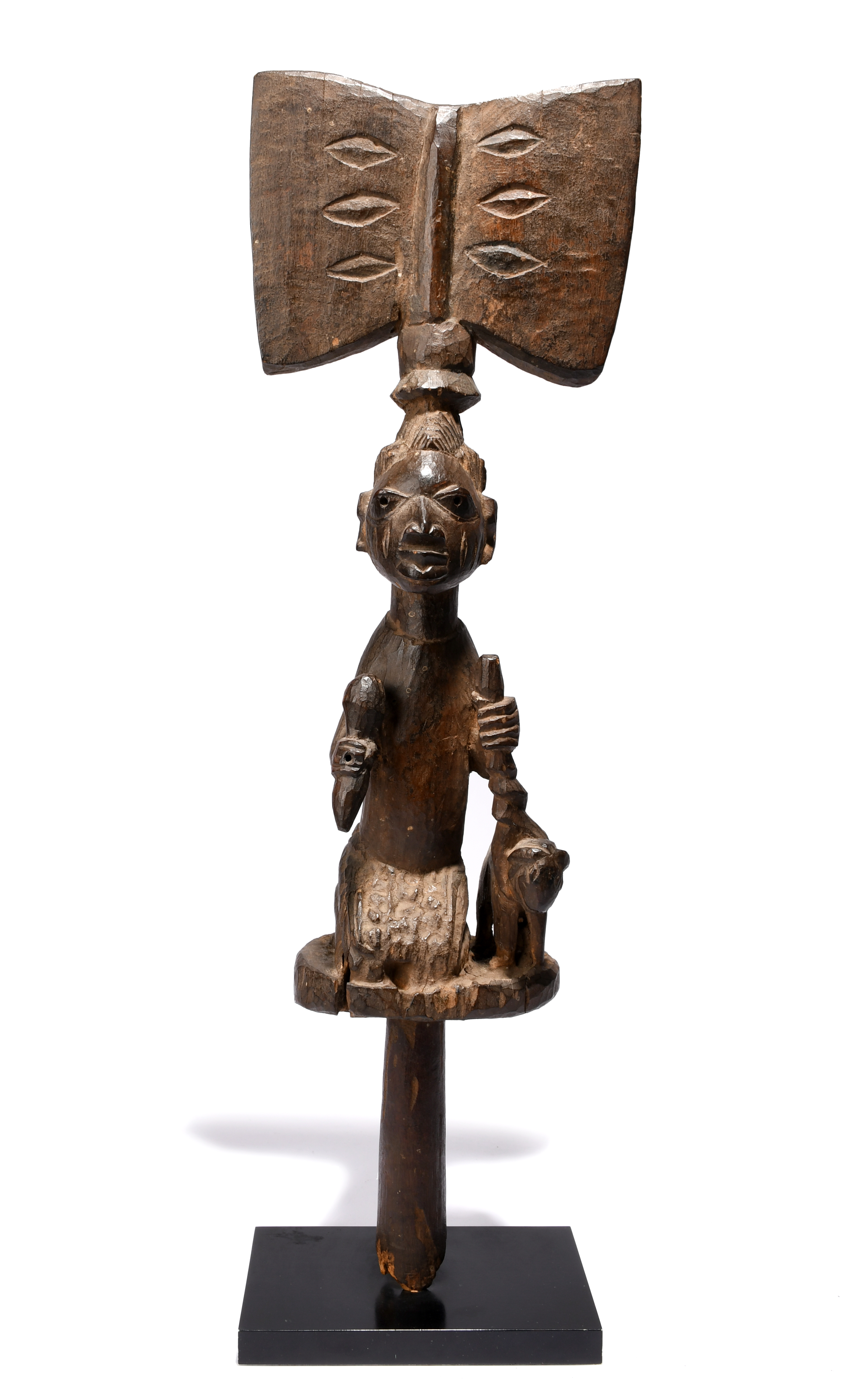 the kneeling figure holding a lightening stone and a tethered ram, with a thunder axe crest,
