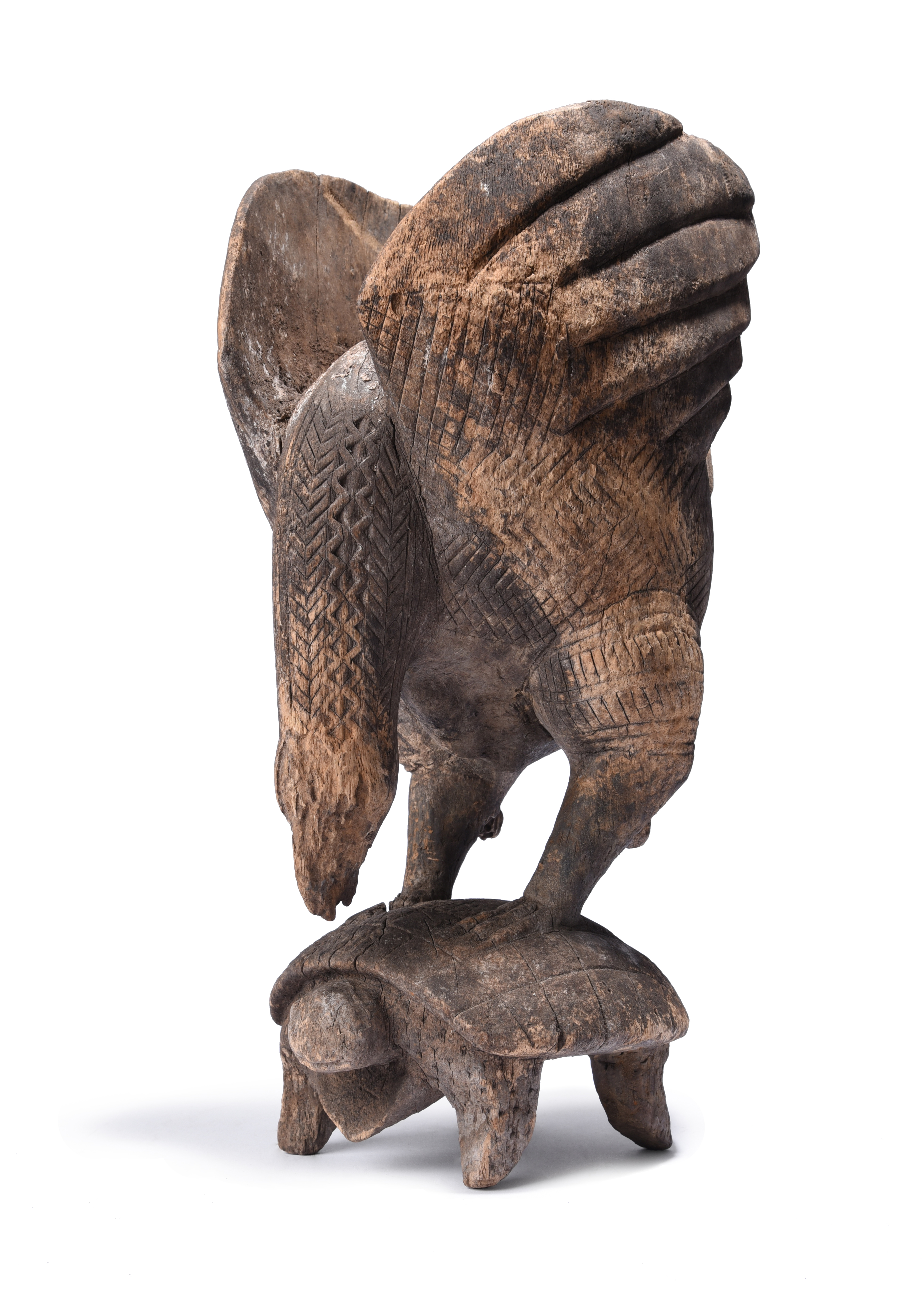carved a tortoise with an eagle on it's shell, with remains of pigment,