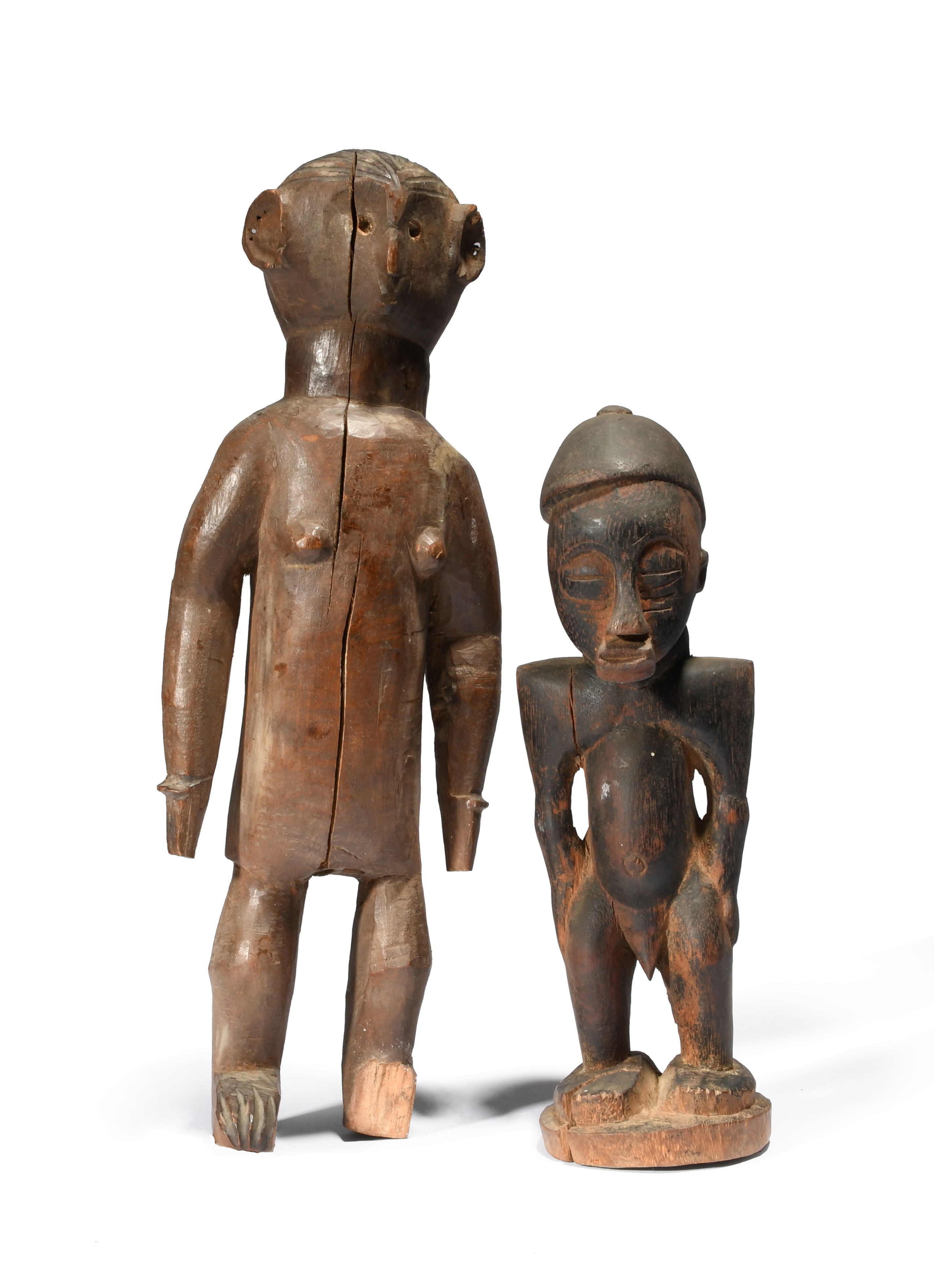 and a Tiv standing figure, with pierced ears and bracelets, 31cm high. (2)
