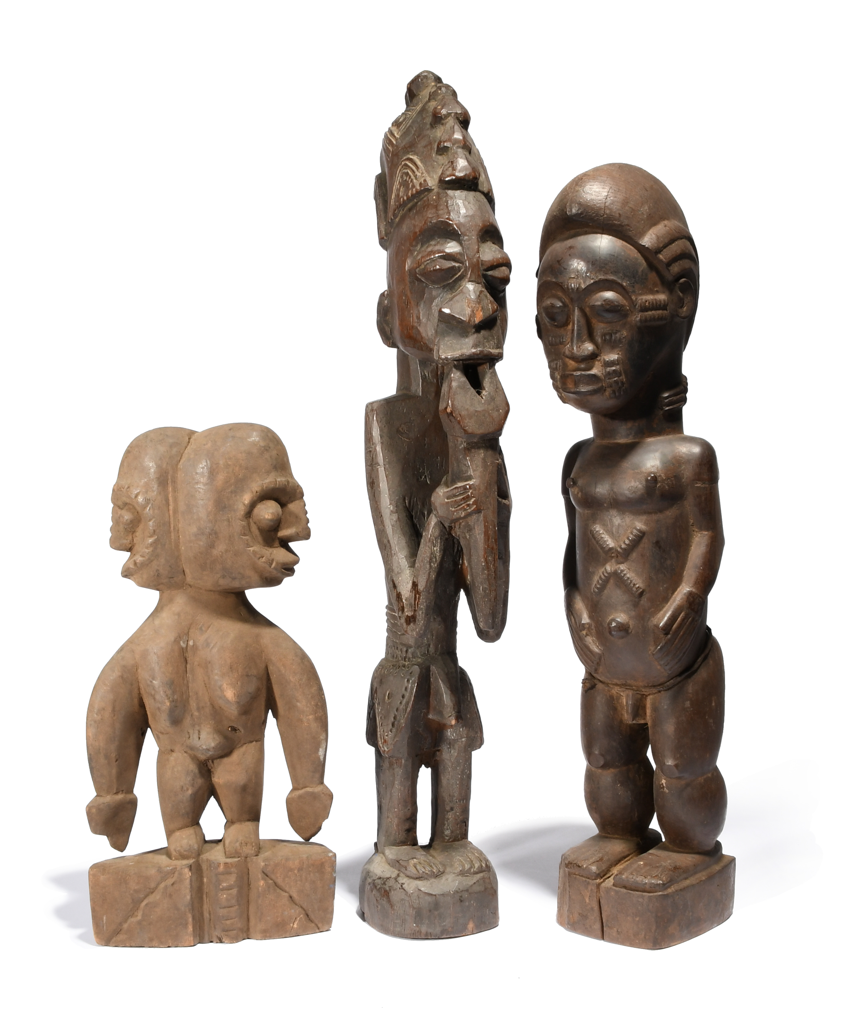 a Yoruba Eshu figure, 52.5cm high and a Nigerian Janus head figure, 31cm high. (3)