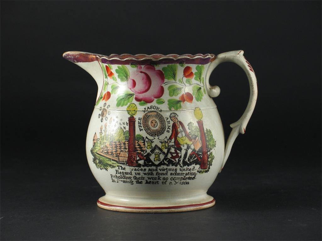 Masonic Interest: a pearlware jug with a pink lustre rim
