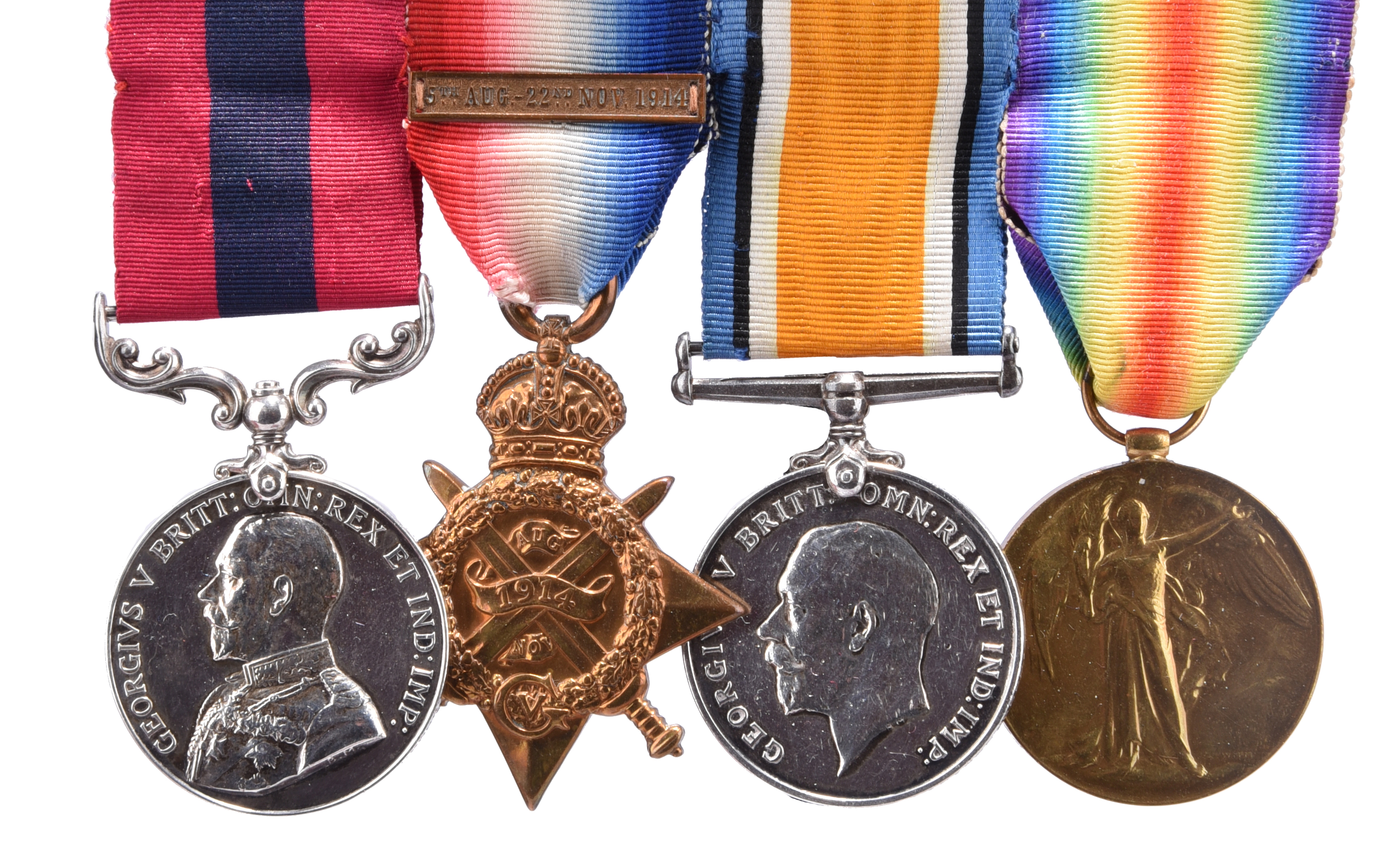 A Great War Distinguished Conduct Medal group of four medals to Sergeant Henry Bradley, King's Own Scottish Borderers: D.C.M., George V (8929 SJT H. BRADLEY. 2/K.O.SCO: BORD.); 1914 Star, with clasp (8929 PTE. H. BRADLEY. K.O.SCO: BORD.); British War Medal and Victory Medal (8929 SJT. H. BRADLEY. K.O.SCO. BORD.); mounted for wearing, good very fine.