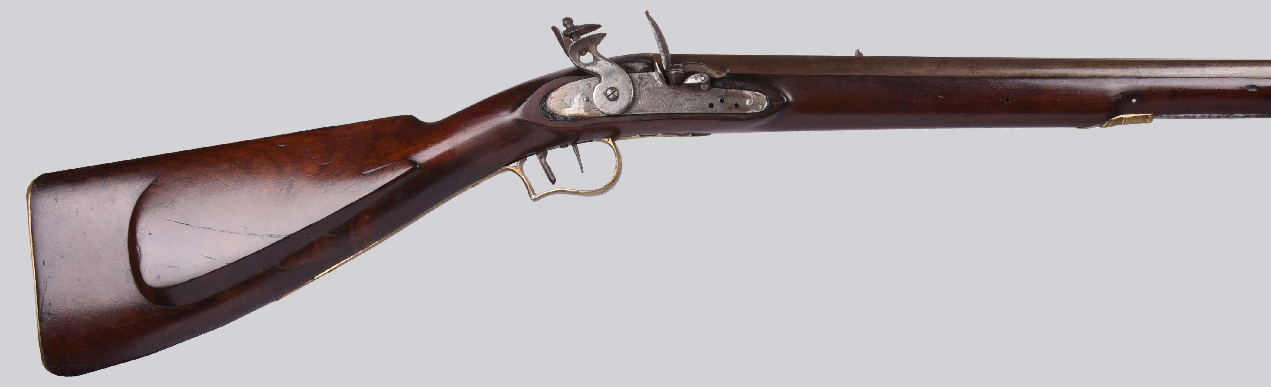 A South African 14 bore flintlock musket, sighted barrel 39 in., shallow top rib with part visible London retailer's mark, Birmingham view and proof marks, flat lock with residual engraving and ring necked cock, full stock with brass furniture, deeply curving butt with cheek rest of the right, left side carved with the name 'Louis Botha Vryhail'.