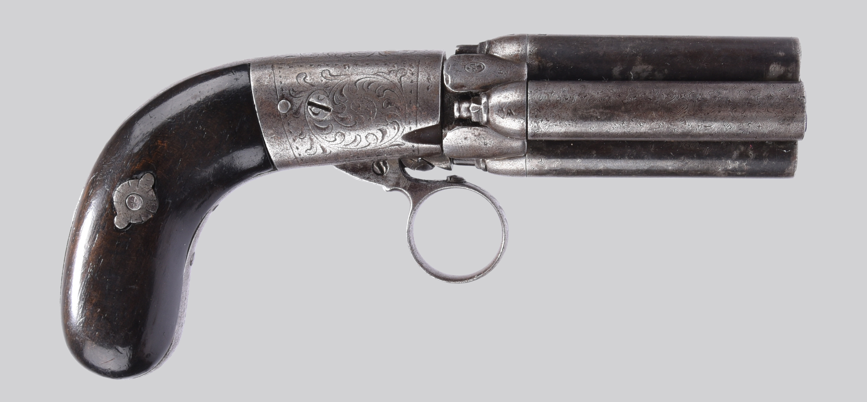 A 19th century Belgian four barrelled 'pepperbox' revolver