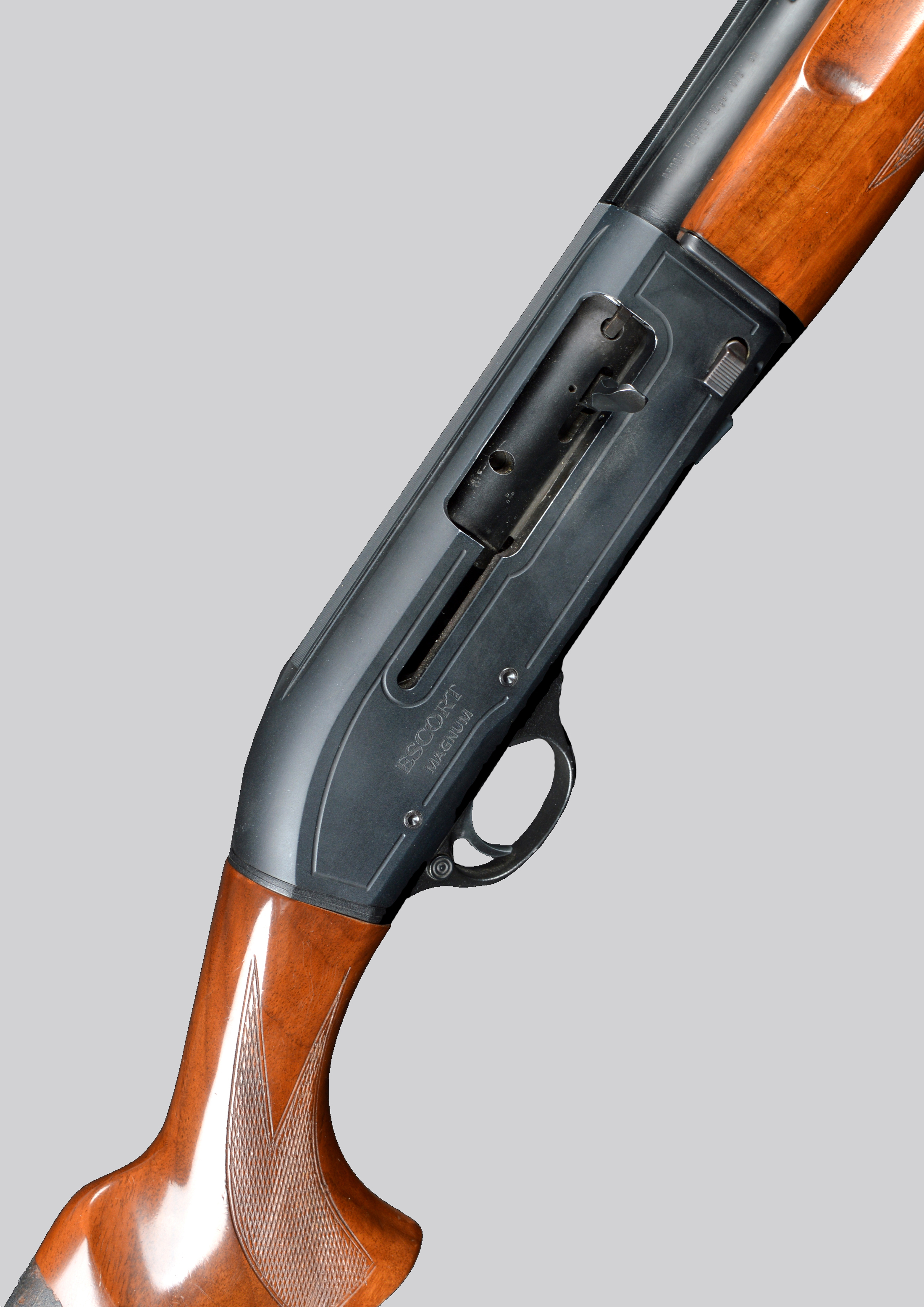 A 12 bore 'Escort Magnum' semi-automatic shotgun, serial number 081129, barrel 27 in. with vented top rib, 3 in. chambers, interchangeable chokes (five included in total) , two round magazine, chequered walnut pistol grip stock; together with a pouch holding the additional chokes and an associated friction fit choke key. Section 2 - SGC or RFD required to purchase.