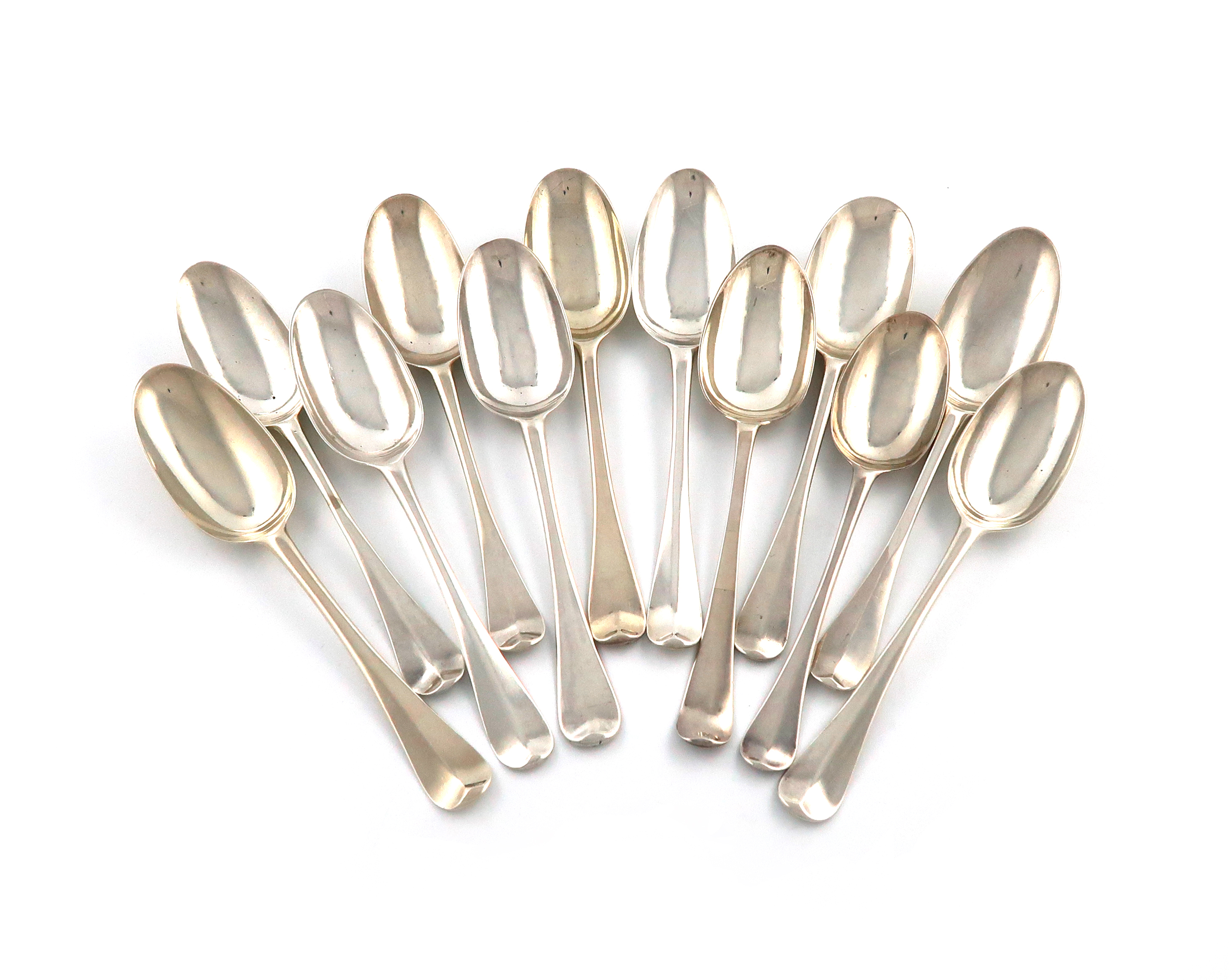 A collection of twelve George I silver Hanoverian pattern tablespoons,