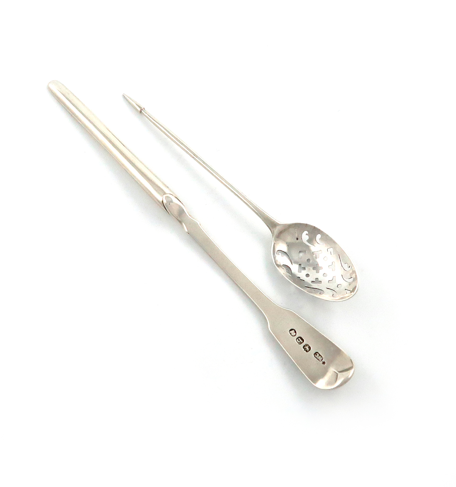 the terminal with script initials, length 17.5cm, plus an 18th century silver mote spoon, maker's mark WF or WE, the bowl pierced and with scratch initials 'I' over 'WRI' conjoined, approx. weight 1.2oz. (2)