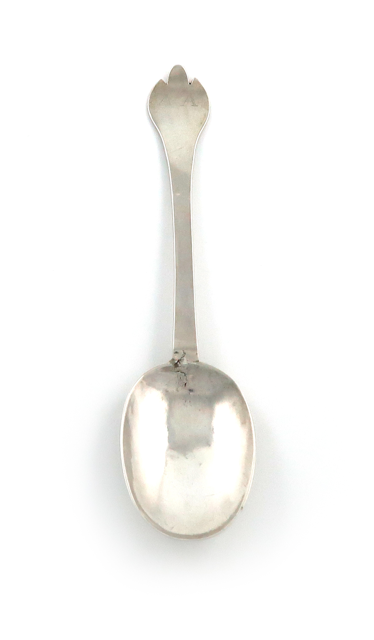 the reverse of the bowl with a raised rat-tail, the reverse of the terminal scratch initialled 'M.C', the front with later initials 'A.A', length 19cm, approx. weight 1.4oz.