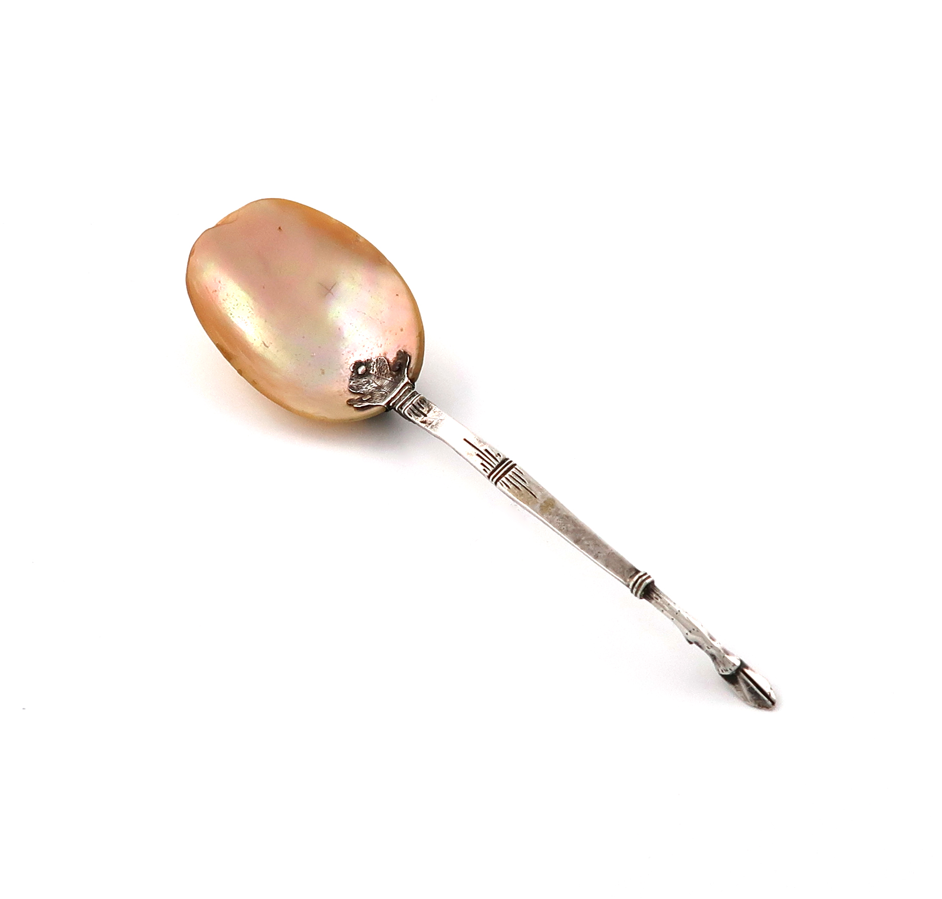 A 17th century silver-mounted mother-of-pearl hoof spoon