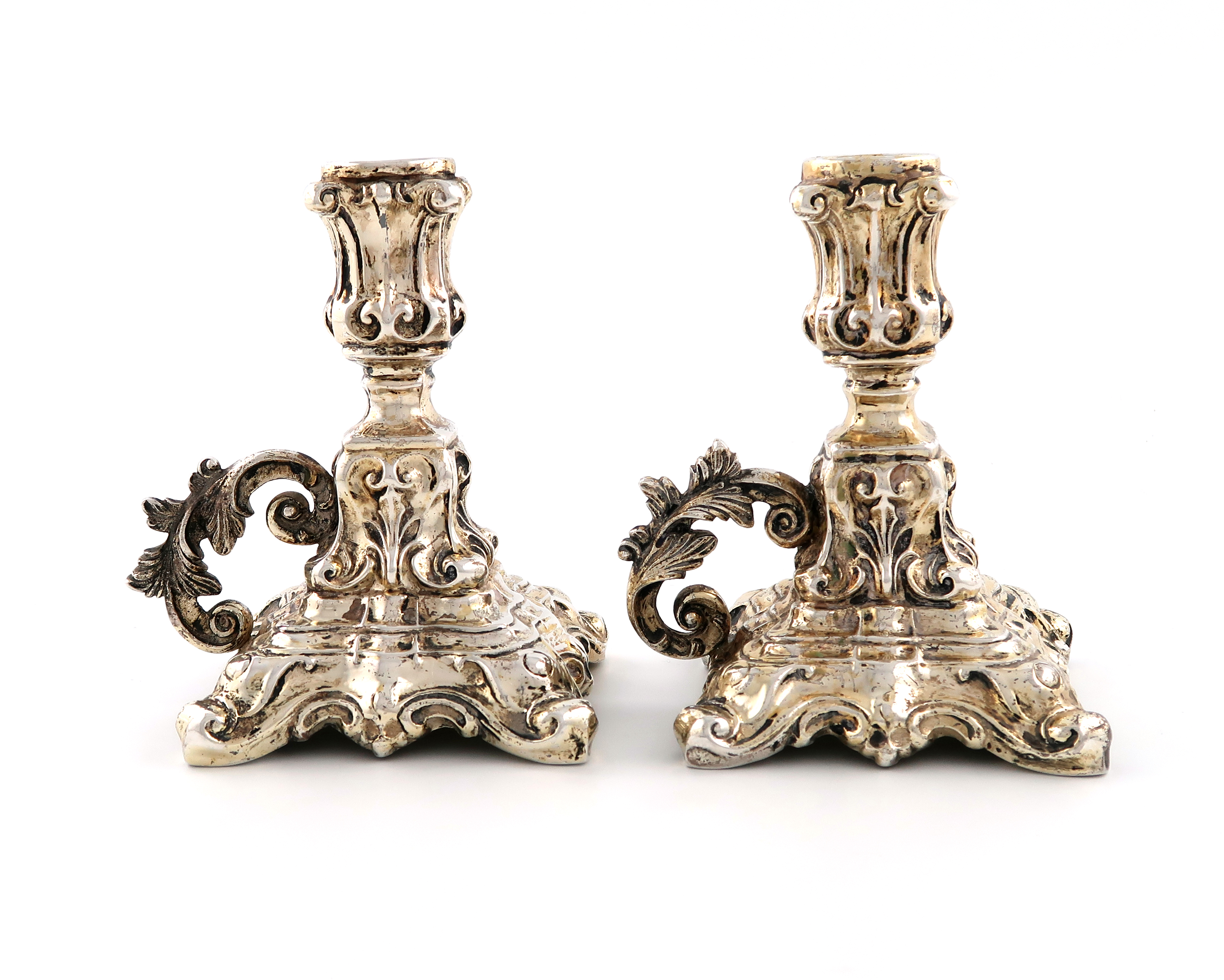 A pair of 19th century Austro-Hungarian silver chamber sticks