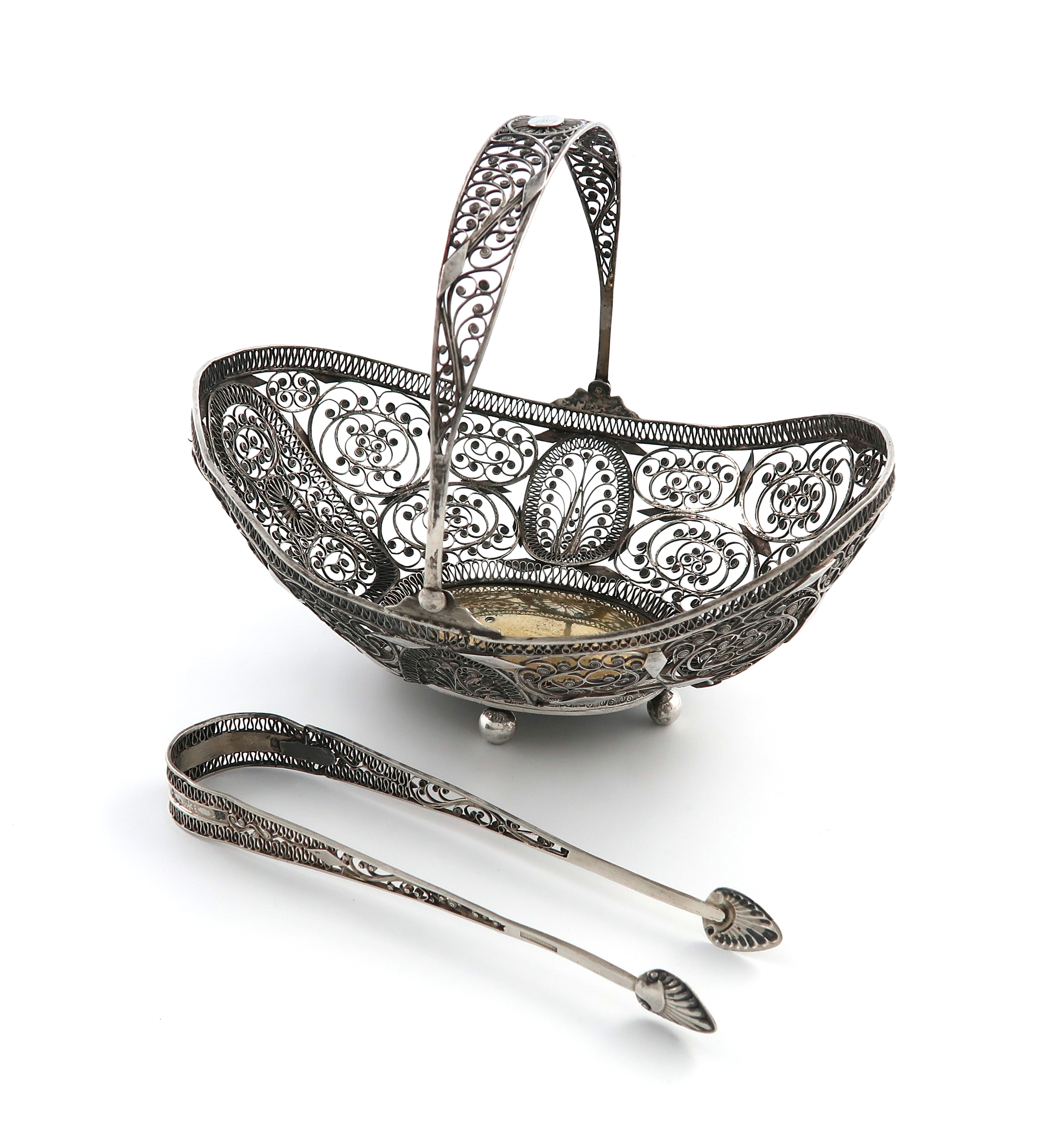 A 19th century continental silver filigree swing-handled basket