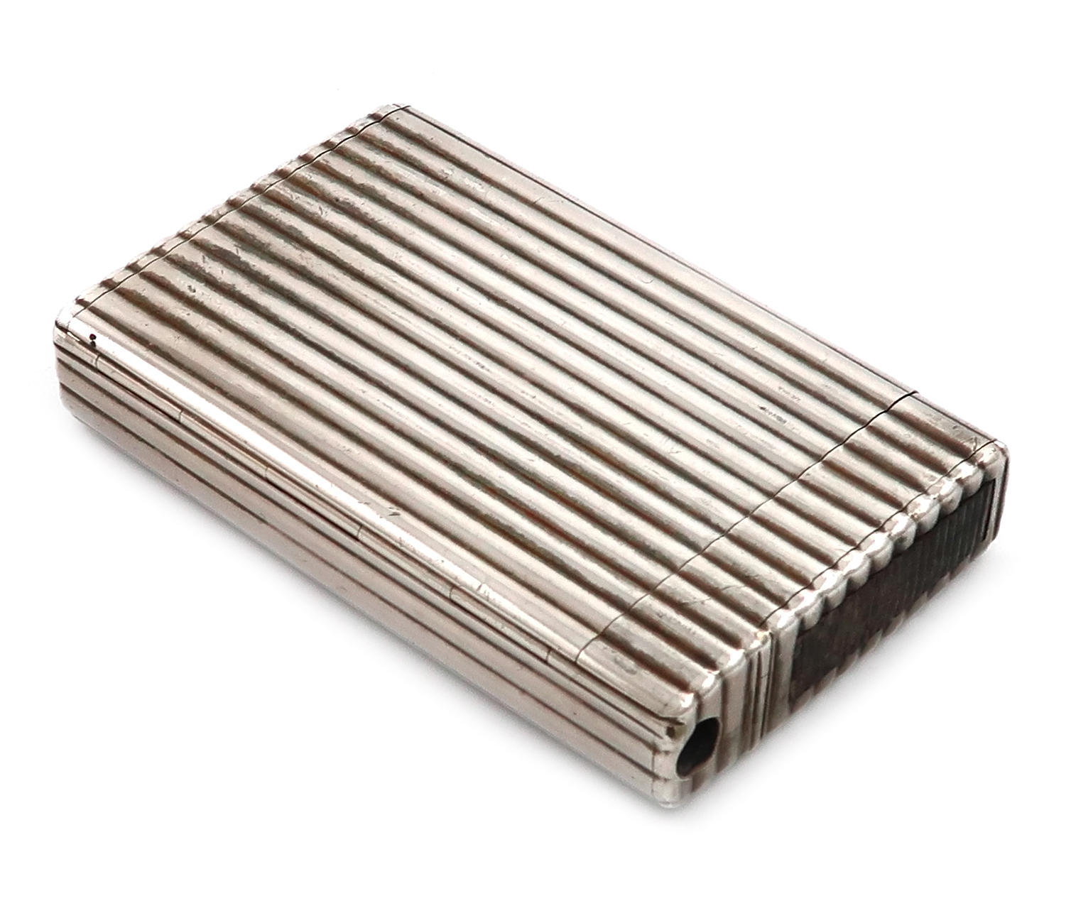 rectangular form, fluted decoration, gilded interior, with a vesta compartment, length 9.3cm, approx. weight 5.5oz.