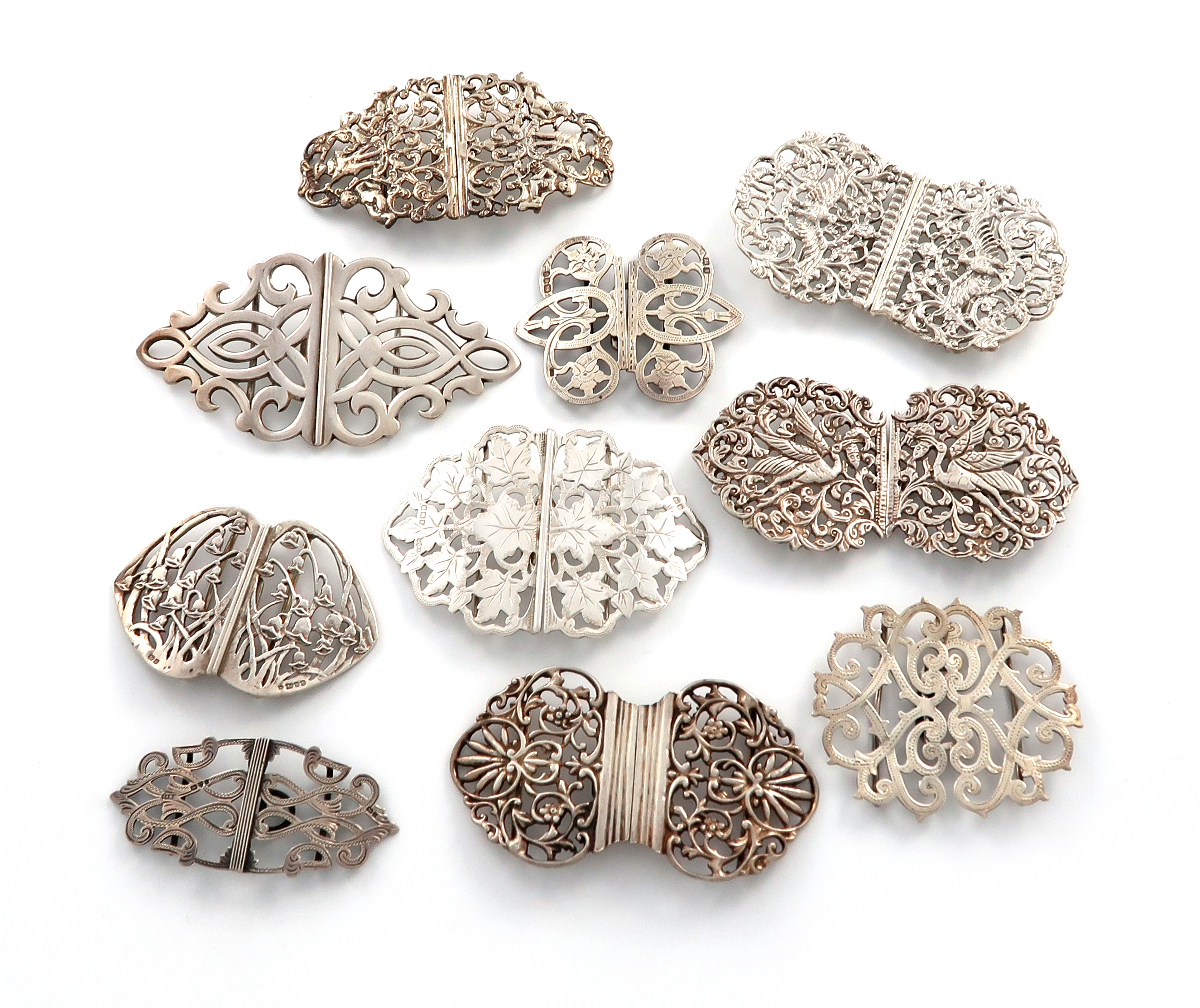 including: a modern one, in the Art Nouveau manner, pierced with flowers, London 1995, an Edwardian one, with plain pierced scroll decoration, by W G Keight, Birmingham 1909, scroll decoration, and eight other examples, approx. weight 12.8oz. (10)
