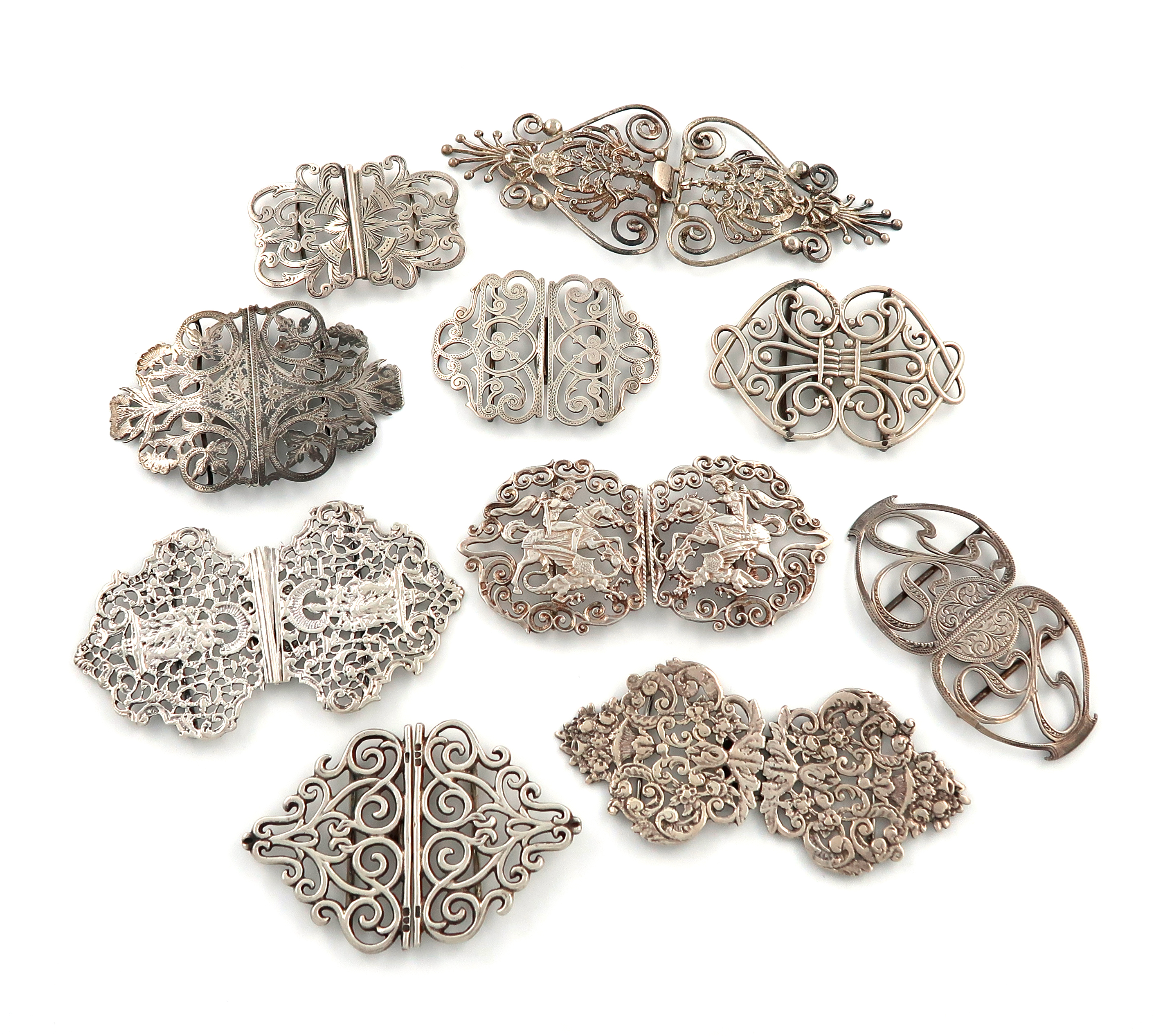 including: a Victorian one by Thomas Johnson, London 1879, pierced and chased with foliate and scroll decoration, a late-Victorian one with Art Nouveau decoration, by Deakin and Francis, Birmingham 1900, and eight other examples, approx. weight 12.4oz. (10)