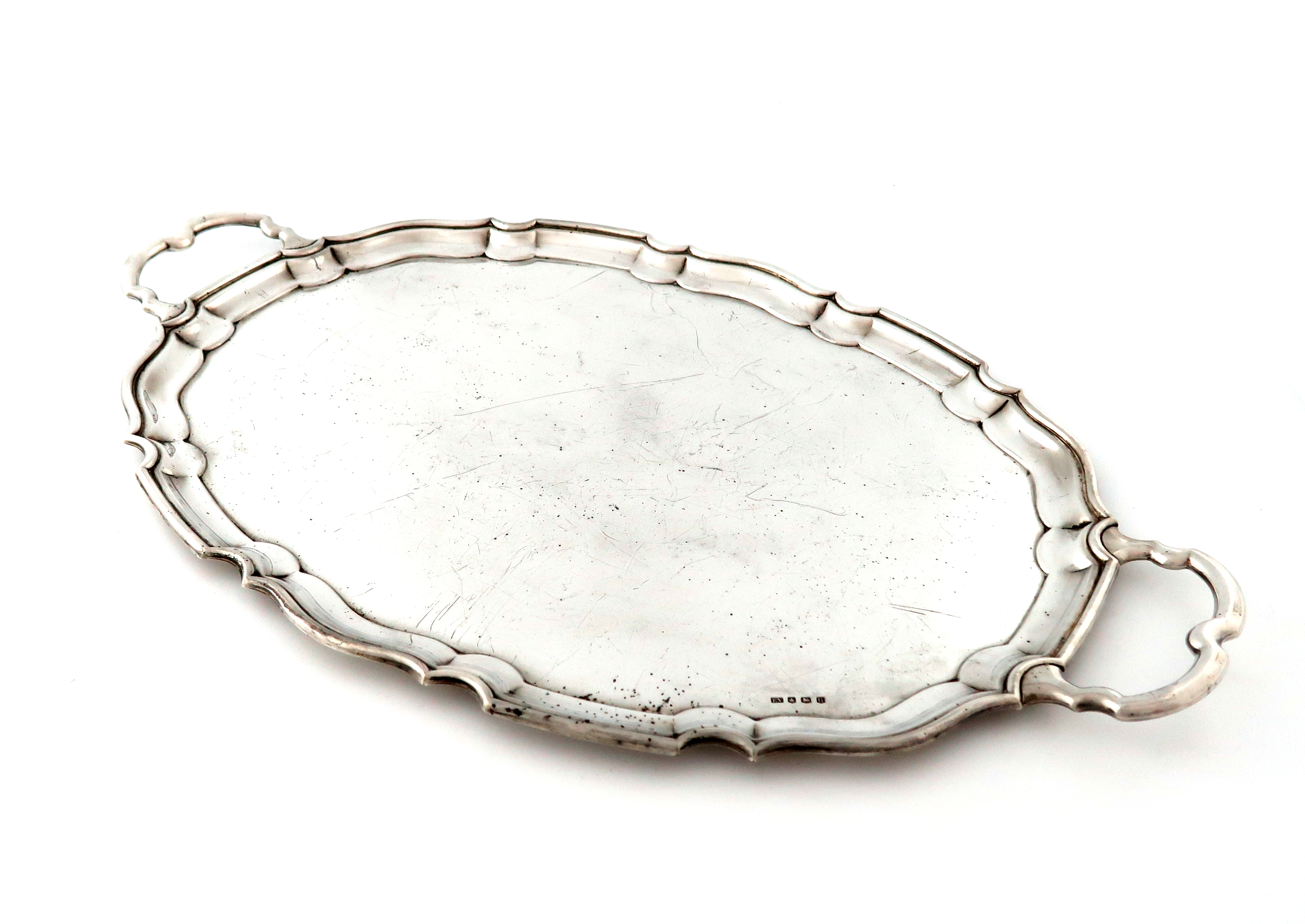 oval form, moulded border, length handle to handle 67.8cm, approx. weight 92oz.