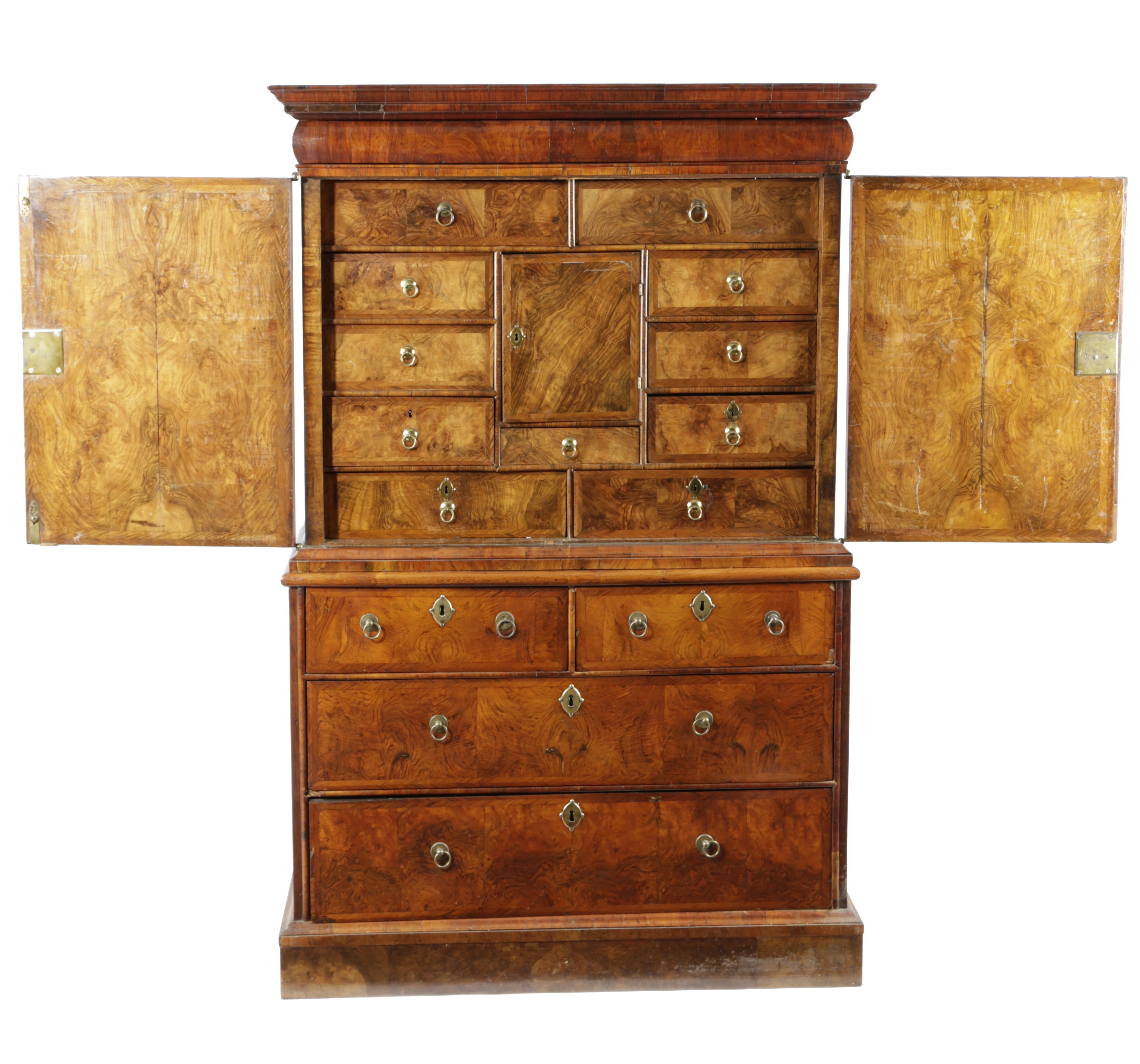 A WILLIAM AND MARY WALNUT CABINET ON CHEST