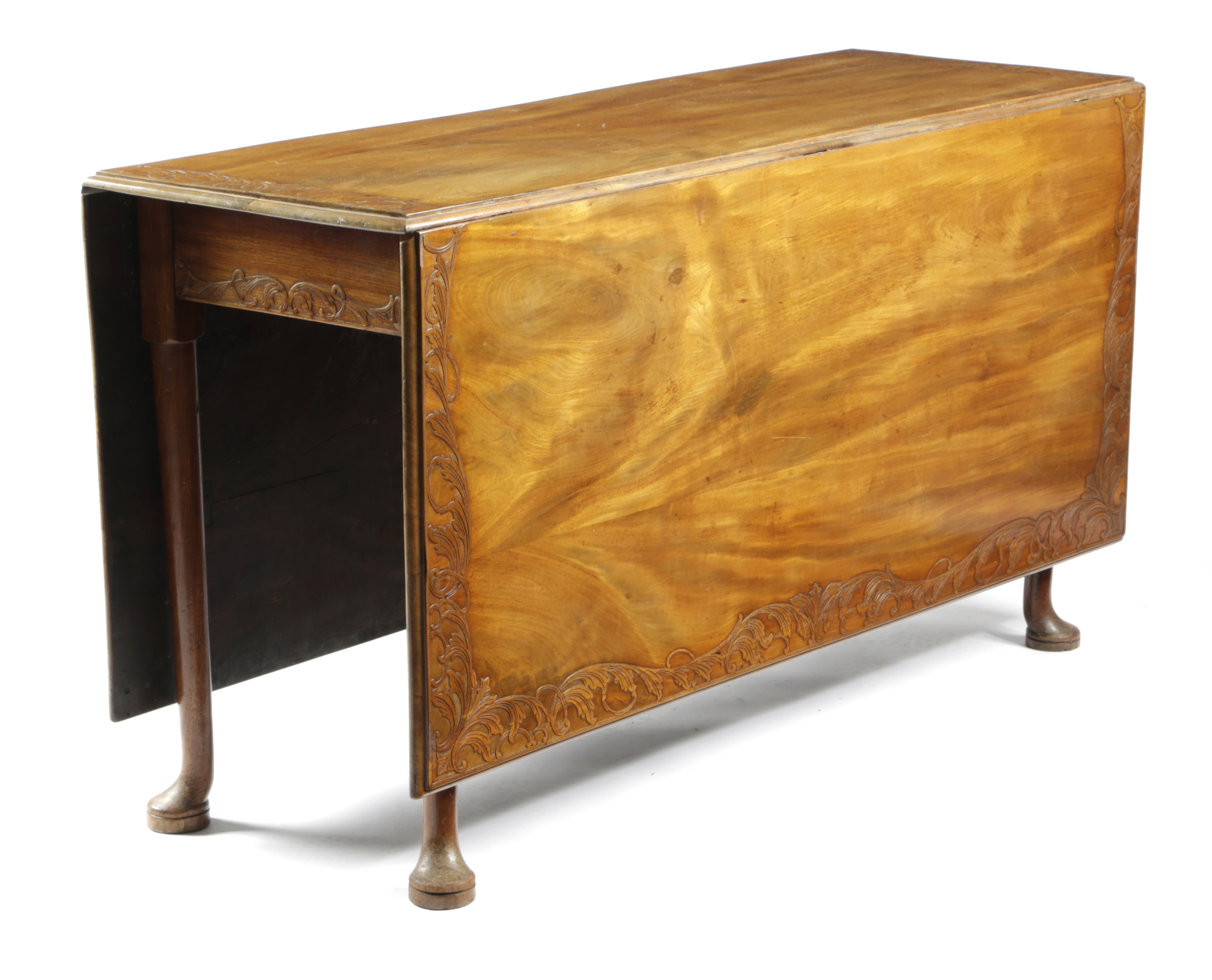 A GEORGE II MAHOGANY DROP-LEAF DINING TABLE