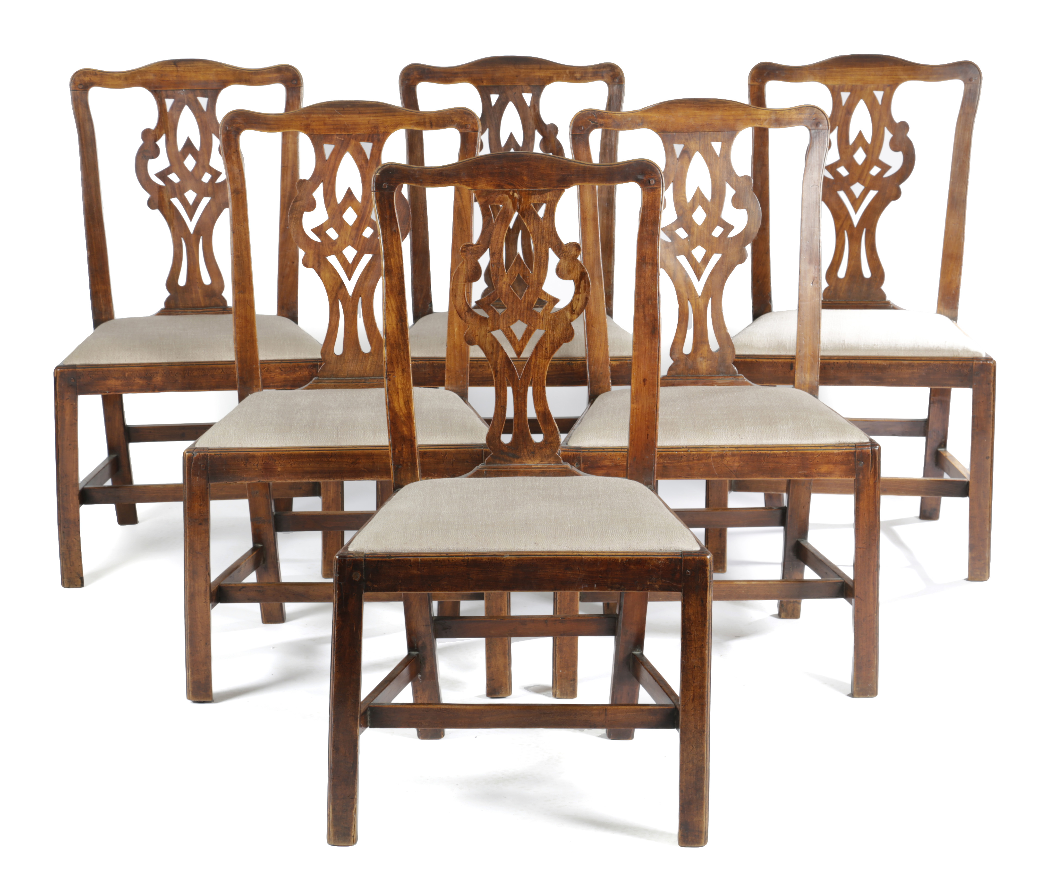 A SET OF SIX GEORGE III FRUITWOOD DINING CHAIRS